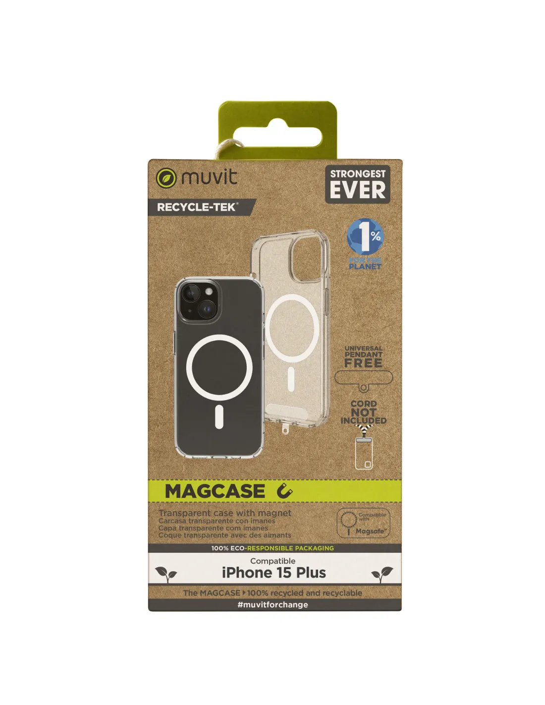 Funda muvit recycletek magsafe para apple iphone 15 plus transparente