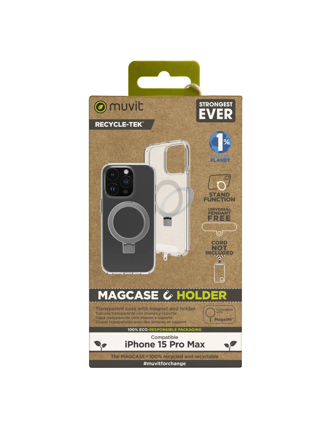 Funda muvit recycletek magsafe + soporte para iphone 15 pro max transparente
