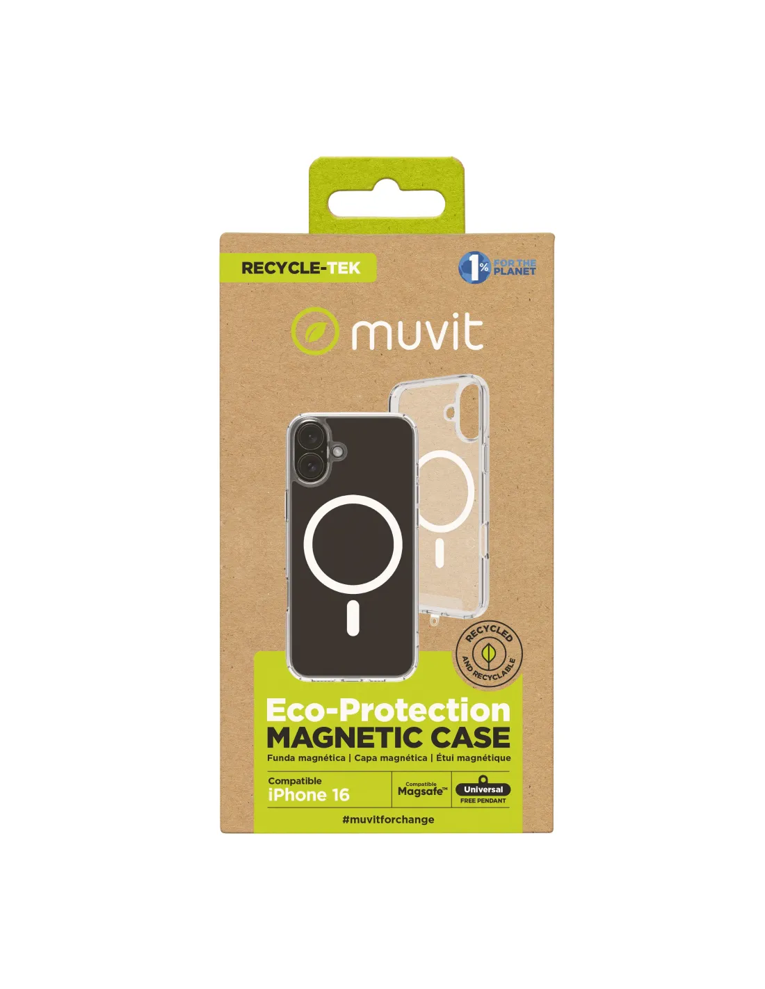 Funda muvit recycletek magsafe para apple iphone 16 transparente