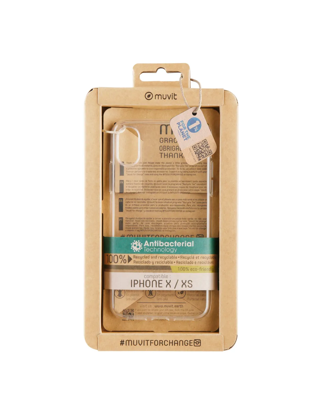 Funda muvit recycletek antibacteriana para apple iphone x - xs transparente