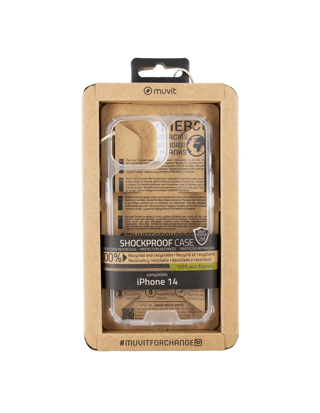 La protección del medio ambiente es, hoy en día, una preocupación en todo momento. Con las fundas recycletek shockproof 2m de muvit for change, proponemos una gama de fundas reciclables,fabricadas con fundas usadas y viejas. Una manera responsable de proteger nuestro smartphone. Porque contribuir en la lucha contra la contaminación y proteger nuestro eco sistema, debe formar partede nuestros gestos cotidianos.Los materiales utilizados en los nuevos móviles son cada vez más delicados y surge la necesidad de protegerlos, para ello hemos diseñado un producto capaz de ofrecer al cliente más intrépido:resistencia y protección para su dispositivo pero sin renunciar al diseño.Fundas Recycletek100% reciclado a partir de un complejo proceso de recuperación.Protegerá tu móvil de caídas y golpes en la vida cotidiana.Protege contra caídas de hasta 2 metros de altura.Flexible y suave al tacto.Protege de arañazos, pequeños golpes y caídas.Acceso a todos los puertos, cámara, altavoz y botones.Material resistenteconserva las mismas cualidades que los productos hechos con materias primasPackagingCartón reciclado y recyclable.Totalmente impreso con tintas BIO.Sin etiquetas ni adhesivos extras.Unión por plegado sin pegamento.
