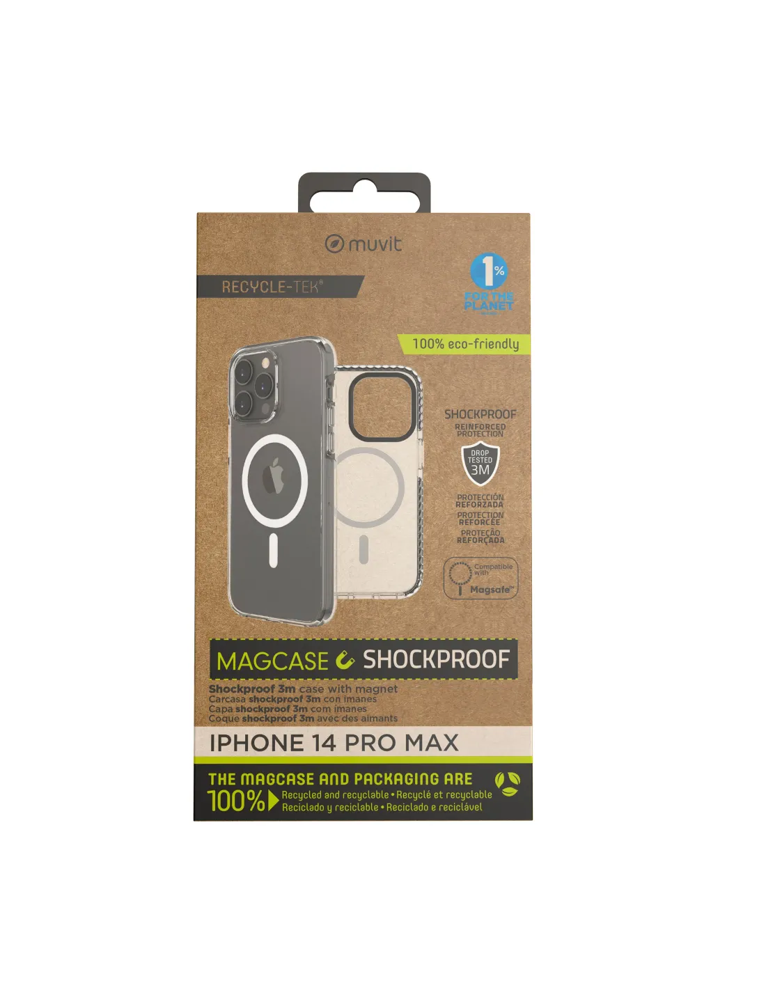 Funda muvit recycletek magsafe shockproof 3m para apple iphone 14 pro max transparente - negra