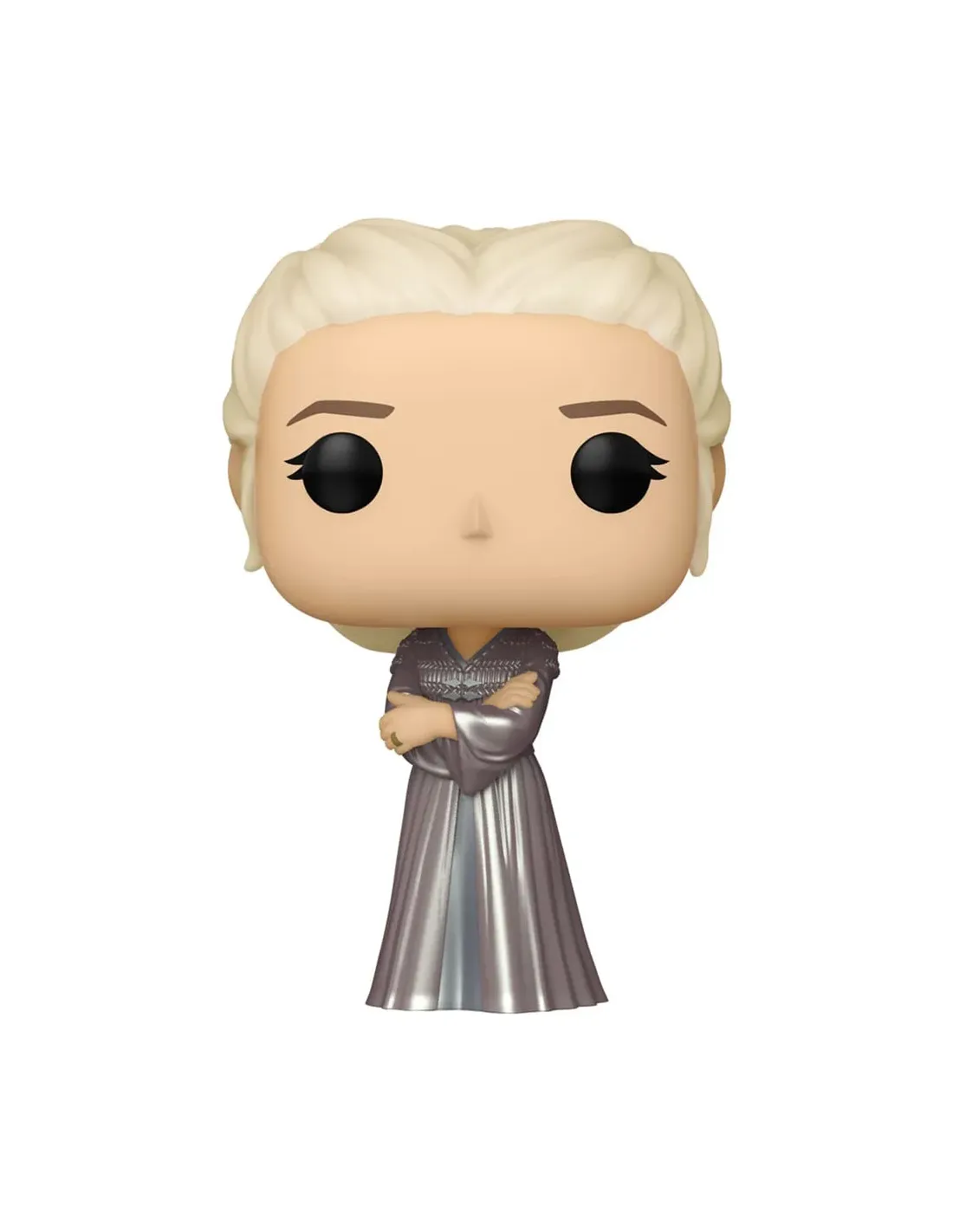 Características del Funko Pop Rhaenyra Targaryen - La Casa del DragónRevive el universo de **La Casa del Dragón** con esta figura coleccionable de **Rhaenyra Targaryen**, uno de los personajes más icónicos de la precuela de Juego de Tronos. Ideal para fans de la saga, coleccionistas de figuras de vinilo y seguidores del mundo de Westeros, este Funko Pop destaca por su diseño detallado y su presentación cuidada.Diseño oficial con acabados detalladosEsta figura forma parte de la colección oficial de Funko Pop! y reproduce fielmente la estética de Rhaenyra Targaryen, con sus rasgos característicos y vestimenta inspirada en la serie. Fabricada en **vinilo resistente**, es perfecta para exponerla tanto en vitrinas como en estanterías personales.Diseño basado en la serie "La Casa del Dragón"Fabricada en vinilo de alta calidadDetalles cuidados que reflejan el personaje originalTamaño ideal para coleccionar y exhibirCon una altura aproximada de **9 centímetros**, esta figura se adapta perfectamente a cualquier espacio de colección Funko. Además, incluye su **caja original ilustrada**, ideal tanto para los que desean mantenerla protegida como para quienes prefieren exhibirla sin abrir.Altura aproximada: 9 cmIncluye caja original con ventanaFácil de almacenar o exponerLicencia oficial FunkoEste producto cuenta con **licencia oficial de HBO**, garantizando su autenticidad como parte del universo Funko Pop! y su valor como pieza de colección.Producto 100% original y licenciadoApto para coleccionistas y fans de todas las edadesPerfecto como regalo temáticoOtras especificacionesMaterial: ViniloSerie: La Casa del Dragón (House of the Dragon)Personaje: Rhaenyra TargaryenPresentación: Caja original con ventana