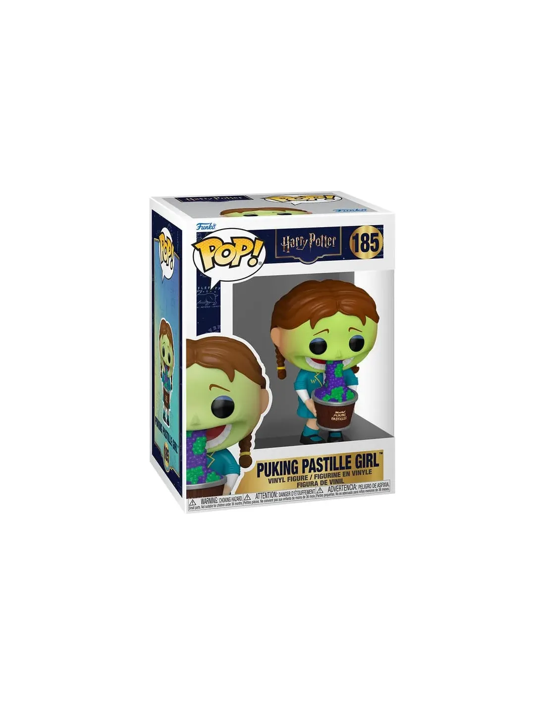 Características de la figura Pop! Puking Pastille Girl - Harry PotterLa figura **Pop! Puking Pastille Girl** está inspirada en una de las escenas más icónicas de *Harry Potter y el Misterio del Príncipe*. Representa a una de las víctimas del travieso dulce de los gemelos Weasley, en la famosa tienda **Weasleys? Wizard Wheezes?**. Un guiño imprescindible para cualquier coleccionista del universo mágico de Harry Potter.Diseño fiel y acabado coleccionableEsta figura de vinilo destaca por su expresión divertida y su estética caricaturesca tan típica de Funko. Representa con detalle el efecto de las famosas Pastillas Vomitivas (Puking Pastilles), ofreciendo una pieza original y reconocible para tu estantería mágica.Altura aproximada: 9,7 cmMaterial: vinilo de alta calidadEstilo: colección Funko Pop! MoviesIdeal para fans y coleccionistasForma parte del universo Funko basado en *Harry Potter y el Misterio del Príncipe?*, por lo que es perfecta para ampliar tu colección relacionada con Hogwarts y sus personajes más entrañables. Una figura que combina humor, magia y nostalgia.Producto con licencia oficial Harry PotterNúmero de caja: 185Referencia Funko: 86437Otras especificacionesCategoría: Películas y TVTipo de producto: Figura Pop!
