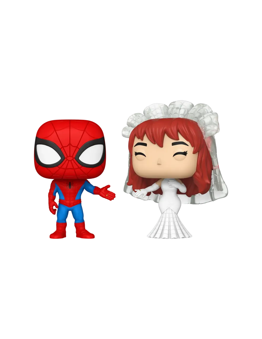 Características del Pop! Spider-Man and MJ 2-PackEste pack doble de Funko Pop! es el homenaje perfecto a una de las parejas más queridas del universo Marvel. El set incluye a **Spider-Man y MJ vestidos de boda**, una edición especial ideal para coleccionistas que quieran capturar un momento icónico con un toque de estilo nupcial. Diseñados con los detalles clásicos de la línea Pop!, estos bobbleheads aportan carácter y emoción a cualquier vitrina dedicada a los héroes de Marvel.Diseño exclusivo para coleccionistas MarvelLos fans de Spider-Man encontrarán en este set una pieza única que celebra el amor y la acción en igual medida. La combinación de ambos personajes en formato 2-pack permite exhibir una escena emblemática con calidad Funko y acabados detallados.Incluye 2 figuras: Spider-Man y MJDiseño inspirado en una escena de bodaLicencia oficial Marvel ? Spider-ManDetalles de presentación y materialesCada figura está fabricada en vinilo resistente con efecto bobblehead (cabeza oscilante), ideal para su exposición en estanterías o vitrinas. Gracias a sus proporciones clásicas Pop! y su diseño reconocible, estas figuras se integran perfectamente en cualquier colección Marvel o Funko.Altura aproximada: 9,4 cm (Spider-Man) y 11,2 cm (MJ)Material: vinilo de alta calidadTipo de producto: Pop! Multipack (2 figuras)Un regalo ideal para fans y coleccionistasEste pack es una excelente elección para quienes siguen las aventuras de Spider-Man desde siempre o buscan una figura con un toque emocional diferente. Perfecto para regalar o ampliar tu colección.Presentación en caja ilustrada con ventanaProducto oficial con número de referencia: 90297Apto para todas las edades recomendadas por el fabricanteOtras especificacionesCategoría: MarvelSublicencia: Spider-Man