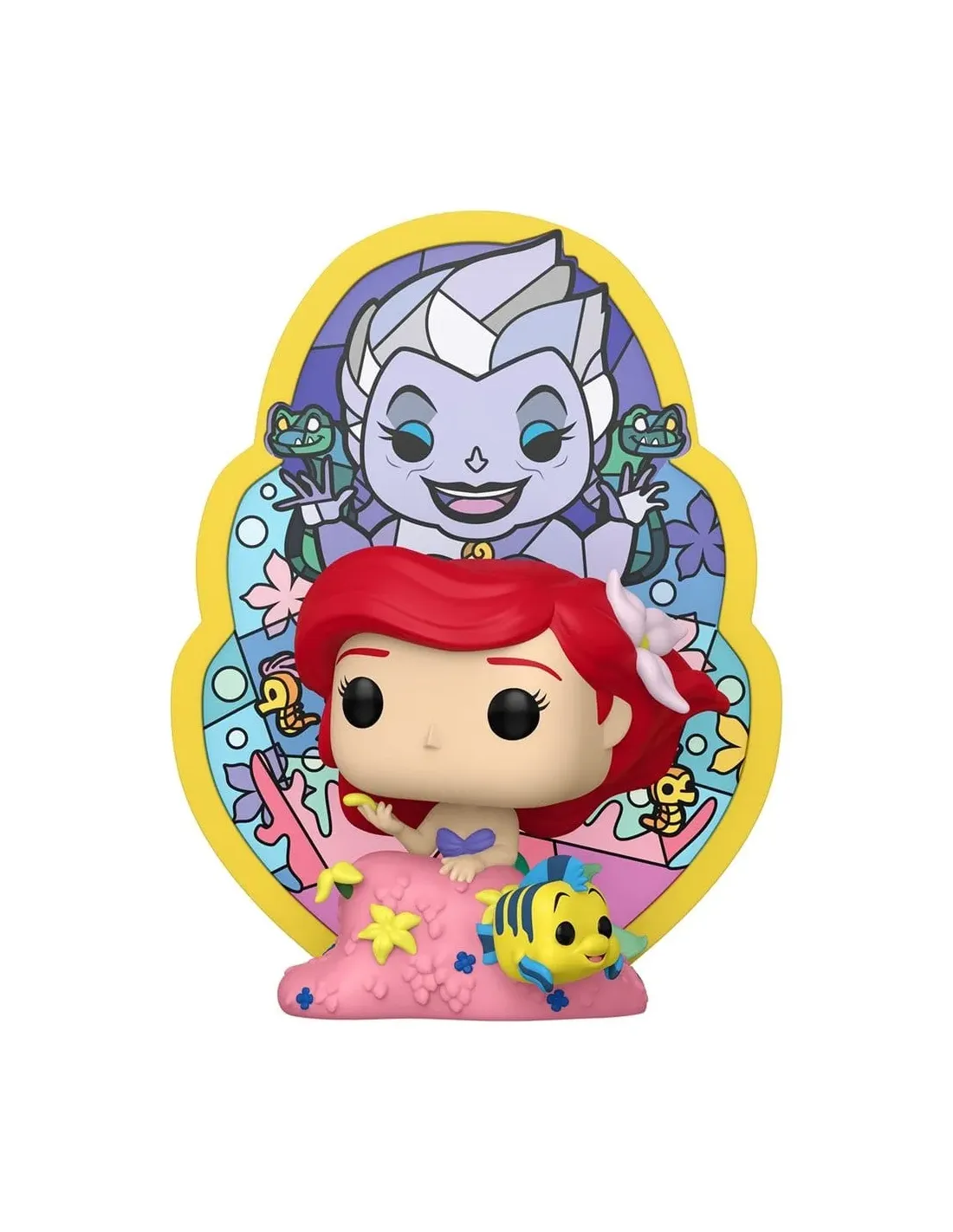 Características de la Funko Pop! Deluxe Ariel (Ursula Stained Glass)La Funko Pop! Deluxe Ariel (Ursula Stained Glass) es una figura de colección pensada para quienes quieren dar un toque visualmente espectacular a su vitrina. Inspirada en The Little Mermaid, esta edición Deluxe presenta a Ariel enmarcada en una escena tipo vidriera, con la silueta de Ursula y otros detalles icónicos del universo Disney. Un modelo diseñado para destacar tanto por tamaño como por presentación.Diseño Deluxe con fondo efecto vidrieraEl principal atractivo de esta figura es su fondo decorativo inspirado en vitrales, que añade profundidad y color a la escena. Además, el diseño está pensado para que puedas iluminar el fondo desde atrás, realzando el efecto "stained glass" y haciendo que la figura cobre aún más protagonismo.Formato Pop! Deluxe con escena integradaFondo tipo vidriera con detalles de UrsulaDiseño ideal para exposición iluminadaFigura oficial Funko de gran tamañoFabricada en vinilo y con acabados cuidados, esta figura mantiene el estilo inconfundible de Funko. Su tamaño aproximado de 16,5 cm la sitúa por encima de los Pop! estándar, aportando mayor presencia visual dentro de cualquier colección.Altura aproximada: 6,5" (16,5 cm)Material: viniloEstilo característico Funko Pop!Una pieza imprescindible para fans de DisneyCon licencia oficial Disney, esta figura es perfecta tanto para coleccionistas como para fans de Ariel y del clásico animado. Su presentación Deluxe la convierte en una excelente opción de regalo o en una pieza central para cualquier colección Disney.Categoría: DisneySublicencia: The Little MermaidIdeal para coleccionistas y exposiciónOtras especificacionesNúmero de artículo: 77991Tipo de producto: Pop!Subtipo: Pop! DeluxeNúmero de caja: 1702
