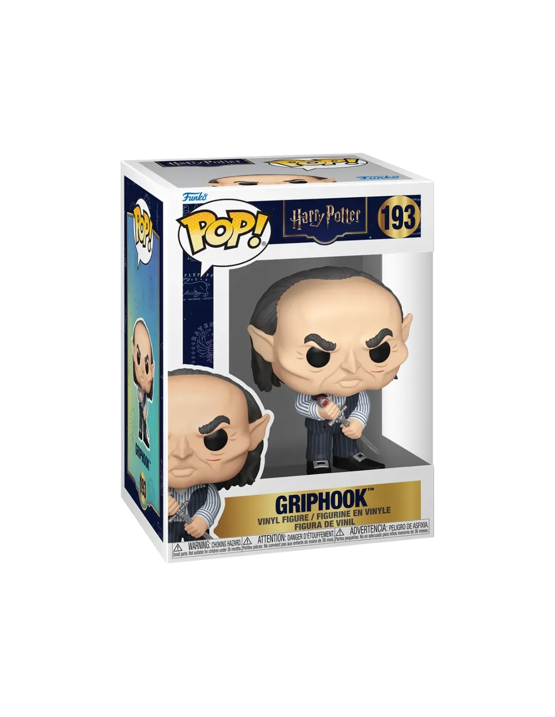 Características del Funko Pop! Griphook - Harry Potter N°193El Funko Pop! Griphook es una figura de colección imprescindible para los fans del universo de Harry Potter, especialmente de la película Harry Potter y las Reliquias de la Muerte: Parte 2. Este personaje, conocido por su papel clave en el asalto al banco Gringotts?, está representado con su característico uniforme de duende y la Espada de Godric Gryffindor en mano.Diseño detallado y licencia oficialLa figura presenta un acabado meticuloso que refleja fielmente al personaje de Griphook en la saga cinematográfica. Fabricada en vinilo de alta calidad, forma parte de la colección oficial de Funko Pop! Movies, bajo la licencia original de Harry Potter?.Figura de vinilo con diseño basado en GriphookAltura aproximada: 9,1 cm (3.6 pulgadas)Incluye la Espada de Godric GryffindorIdeal para coleccionistas y fansEste modelo es el número 193 dentro de la serie Pop! Movies y es perfecto para completar tu colección de personajes del mundo mágico. Su presentación en caja con ventana permite su exposición sin necesidad de abrir el embalaje.Producto coleccionable con presentación en caja ilustradaCompatible con fundas protectoras Pop!Recomendado para mayores de 3 añosOtras especificacionesNúmero de artículo: 90269Categoría: Películas y TVTipo de producto: Figura Pop! de vinilo