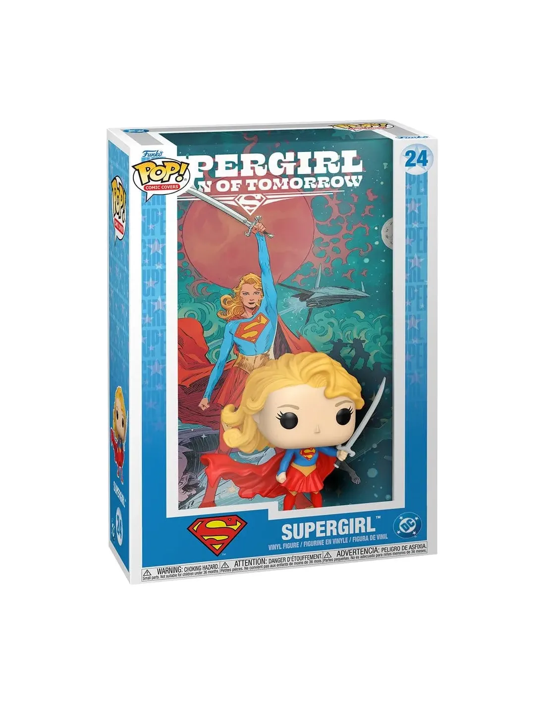 Características del Funko Pop! Comic Cover DC SupergirlEste coleccionable de la línea Funko Pop! Comic Covers rinde homenaje a la icónica portada del cómic Supergirl: Woman of Tomorrow. Diseñado para fans del universo DC y amantes del formato display, este modelo combina figura y fondo en una presentación cuidada que destaca por su valor decorativo y de colección.Diseño inspirado en la portada originalLa figura representa a Supergirl en una pose heróica, enmarcada por el fondo impreso de la portada original del cómic. Todo el conjunto está integrado en una vitrina plástica transparente que garantiza la protección del contenido y realza su presencia en cualquier estantería.Incluye figura Funko Pop! adherida a la base y fondoInspirada en el cómic Supergirl: Woman of TomorrowLicencia oficial de DC ComicsFormato ideal para exponerEste modelo viene montado en una caja protectora con dimensiones ideales para exponer junto a otros títulos de la serie Comic Covers. La figura está fija para asegurar su integridad durante el transporte o exposición.Altura aproximada de la figura: 10,4 cmDimensiones de la caja: 17,8 cm (ancho) x 27,4 cm (alto) x 7,2 cm (profundidad)Formato cerrado y resistente para exposiciónOtras especificacionesNúmero de producto: 90455Línea: Pop! Comic CoversNúmero de caja: 24Categoría: Cómics y SuperhéroesSublicencia: Supergirl