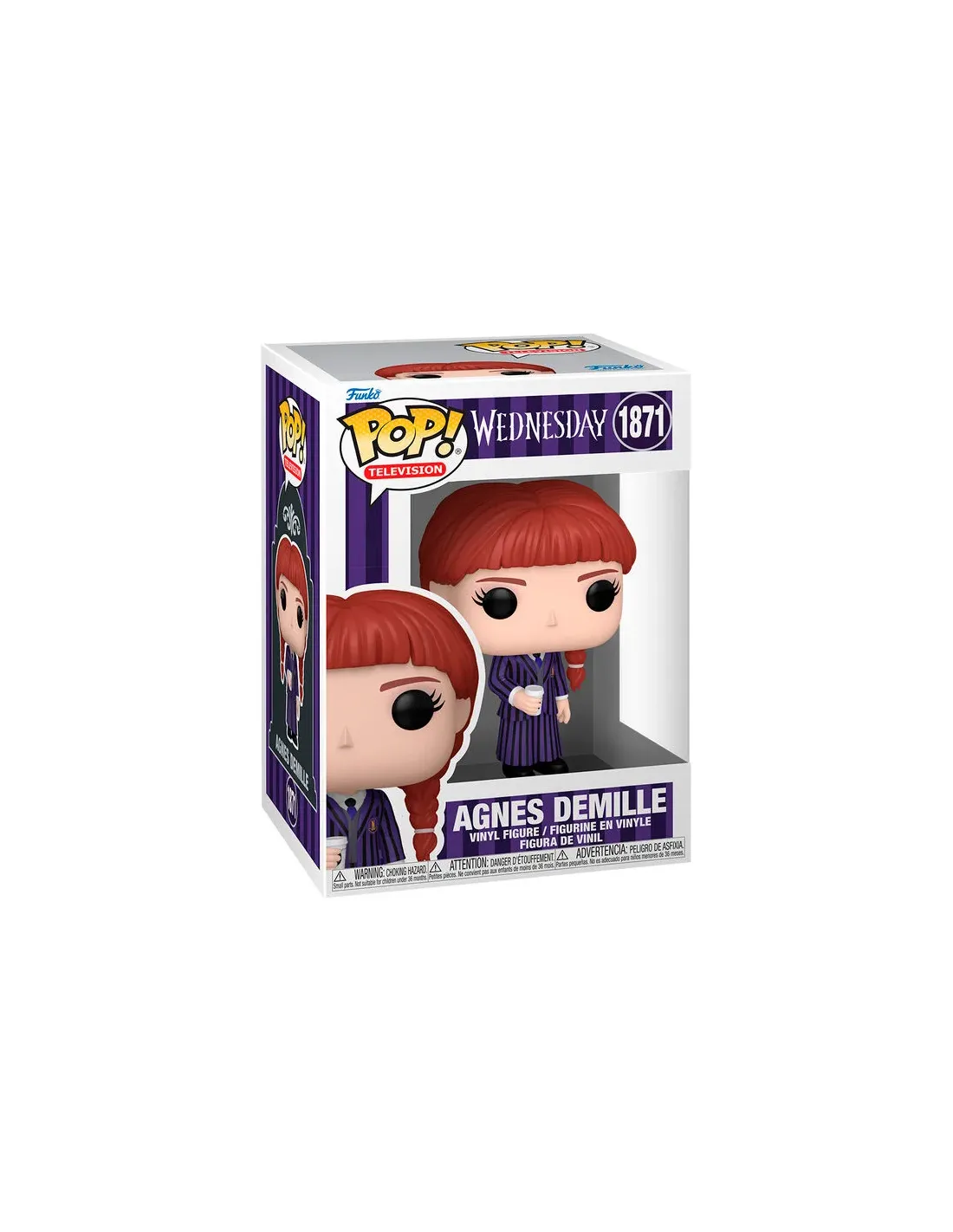 Características del Funko Pop! TV Wednesday Pt.2 - Agnes DeMilleEl universo de Nevermore Academy se expande con este exclusivo Funko Pop! de Agnes DeMille, una figura imprescindible para los fans de la serie Wednesday de Netflix. Ideal para coleccionistas de la línea Pop! Television, este personaje aporta carácter y misterio a cualquier estantería, homenajeando a una de las figuras más peculiares de la segunda parte de la saga televisiva.Diseño inspirado en la serie WednesdayEsta figura representa a Agnes DeMille, una vanisher de la Nevermore Academy, lista para unirse al peculiar mundo de Wednesday Addams. Su diseño captura con fidelidad el estilo visual del personaje tal como aparece en la serie, haciendo de este Funko un complemento perfecto para tu colección.Basado en la licencia oficial de Wednesday (Netflix)Diseño detallado con acabados característicosPerfecto para fans de The Addams Family y el universo NevermoreTamaño compacto y coleccionableCon una altura de aproximadamente 9,4 cm, este Funko Pop! es ideal tanto para exhibir en vitrinas como para decorar escritorios o espacios personales. Su caja numerada lo hace también ideal para coleccionistas que buscan mantener sus figuras en estado original.Altura: 3.7 pulgadas (9,4 cm)Producto de vinilo resistenteIncluye caja original con ventana expositora (Box #1871)Una adición imprescindible para tu colección Pop!Agnes DeMille llega para completar la línea de personajes de Wednesday. Ya seas seguidor de la serie o coleccionista de figuras de televisión, esta pieza añade una cuota de misticismo y elegancia a tu colección.Otras especificacionesNúmero de artículo: 90870Categoría: Movies & TVTipo de producto: Pop!Sublicencia: Wednesday