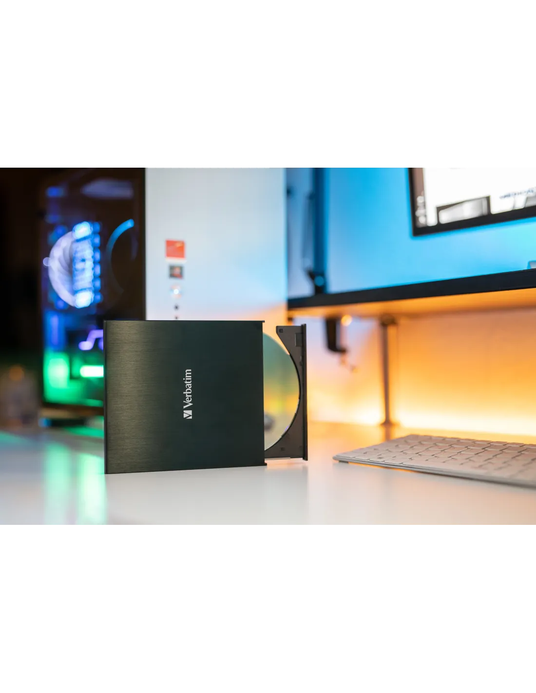 Verbatim 43886. Color del producto: Negro, Tipo de carga en disco: Bandeja. Utilizar con: Sobremesa/Portátil, Tipo de unidad óptica: DVD±RW, Interfaz: USB 3.2 Gen 1 (3.1 Gen 1). Velocidad de escritura en CD: 24x, DVD+R, velociad de escritura: 8x, Velocidad de reescritura en CD: 24x. Velocidad de lectura de CD: 24x, CD-R, velocidad de lectura: 24x, CD-RW, velocidad de lectura: 24x. Ancho: 133 mm, Profundidad: 145 mm, Altura: 11 mm