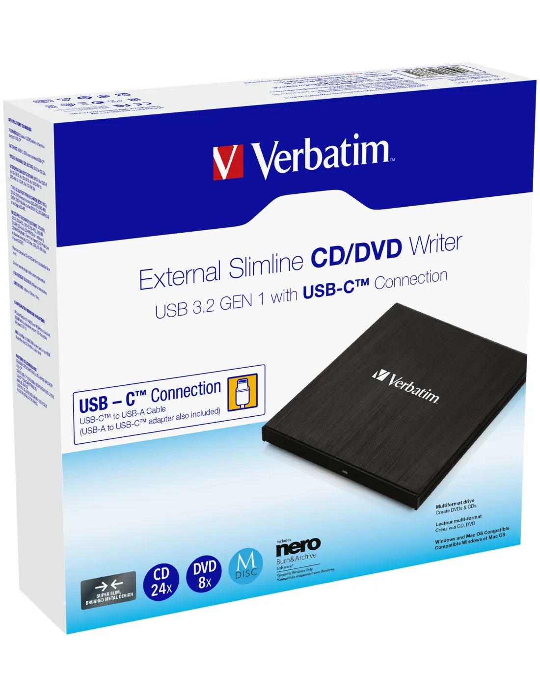 La grabadora externa de CD/DVD Slimline con conexión USB-C proporciona la solución: este dispositivo compacto es el complemento ideal para su notebook, ultrabook, netbook o incluso PC. Úsela para instalar su software o realizar copias de seguridad. La grabadora externa de CD/DVD Slimline de Verbatim es apenas más grande que un DVD y se alimenta por USB, por lo que no se necesita un adaptador de corriente que ocupa espacio.