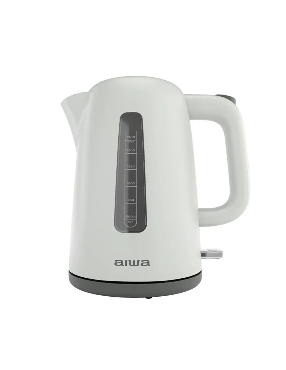 Características del Hervidor Aiwa AKT-2000El Aiwa AKT-2000 es un hervidor eléctrico diseñado para ofrecerte rapidez, seguridad y practicidad en el día a día. Con una capacidad de 1,7 litros y una potencia de 2200 W, este modelo es ideal para preparar infusiones, café, sopas instantáneas o hervir agua en cuestión de segundos. Su diseño compacto y materiales seguros lo convierten en una excelente opción para el hogar o la oficina.Calentamiento rápido y capacidad generosaGracias a su potente resistencia de 2200 W, el AKT-2000 calienta el agua de forma eficiente, ahorrando tiempo y energía. Su depósito de 1,7 litros permite preparar varias tazas en una sola carga, lo que lo hace ideal para familias o reuniones.Potencia de 2200 W para hervir en pocos minutosCapacidad de 1,7 litros: hasta 6-7 tazasMaterial libre de BPA, seguro para uso alimentarioDiseño funcional y seguroEste hervidor incorpora funciones pensadas para una experiencia cómoda y sin riesgos. Incluye protección contra sobrecalentamiento, apagado automático al hervir, y una base giratoria de 360° que permite levantarlo y colocarlo fácilmente desde cualquier ángulo.Base giratoria 360° sin cablesApagado automático y sistema de seguridad contra sobrecalentamientoAlmacenamiento integrado para el cableFiltro antical y mantenimiento sencilloEl hervidor Aiwa AKT-2000 está equipado con un filtro antical extraíble de acero inoxidable, que mejora la calidad del agua y prolonga la vida útil del aparato. Su limpieza es fácil y rápida, ideal para un uso diario sin complicaciones.Filtro antical desmontable de acero inoxidableFácil limpieza y mantenimientoDiseño compacto y ligeroOtras especificacionesModelo: Aiwa AKT-2000Material principal: Plástico ligero libre de BPAControl automático (tipo STRIX no confirmado)