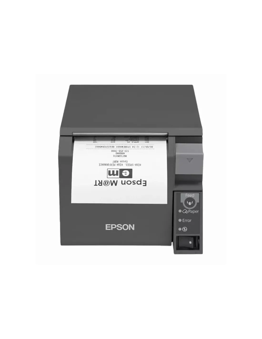 Epson TM-T70II (025A0). Tecnología de impresión: Térmico, Tipo: Impresora de recibos, Velocidad de impresión: 250 mm/s. Máximo diámetro del rollo: 8,3 cm, Ancho de papel soportado: 80 mm. Tecnología de conectividad: Inalámbrico y alámbrico, Conector USB: USB Tipo B, Tipo de serie de interfaz: RS-232. Nivel de presión acústica (impresión): 55 dB, Tiempo medio entre fallos: 360000 h, País de origen: China. Color del producto: Negro