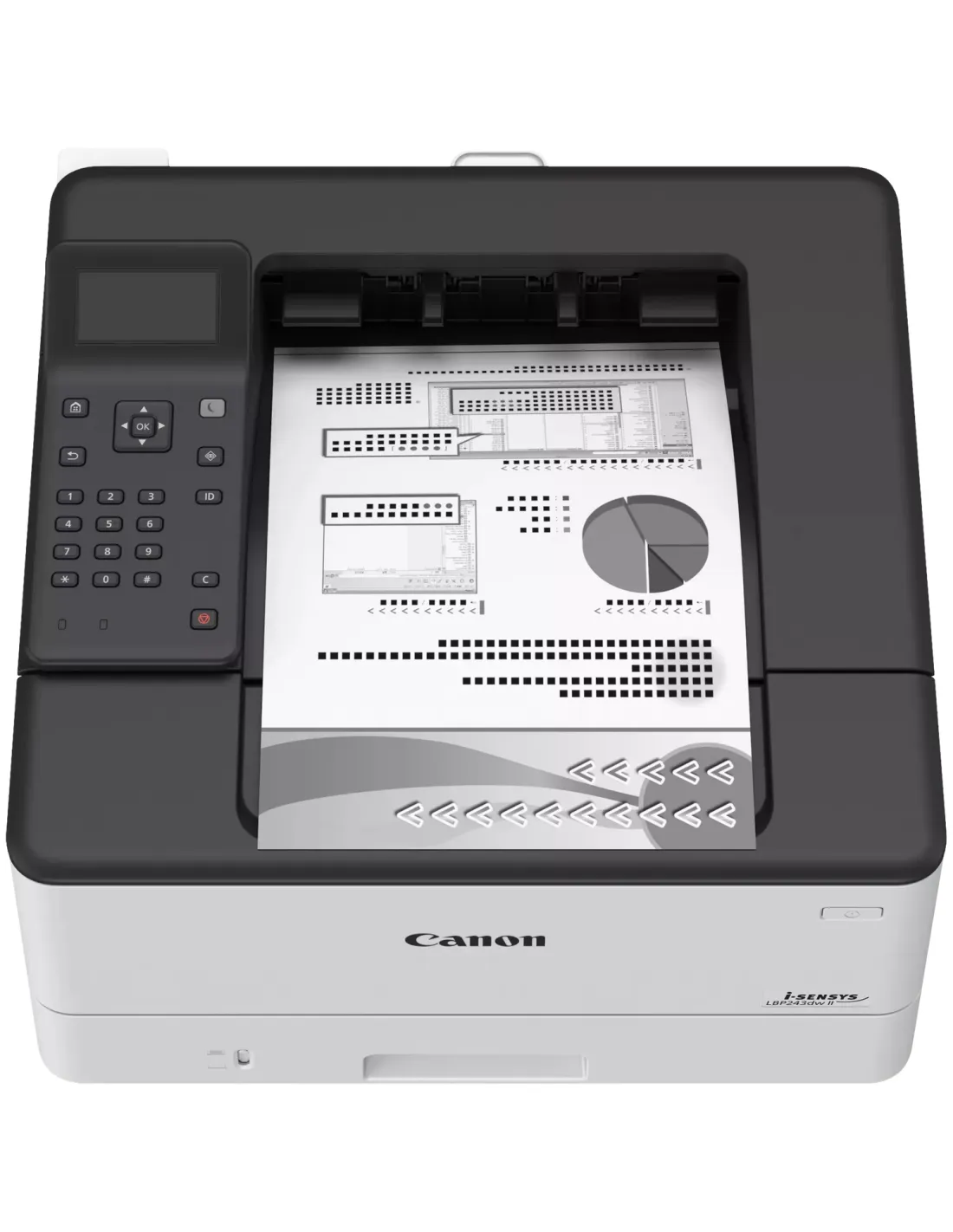 Características de la Canon LBP243dw II Láser Monocromo A4La **Canon LBP243dw II** es una impresora láser monocromo pensada para **oficinas y entornos profesionales** que requieren velocidad, fiabilidad y conectividad avanzada. Con una impresión de hasta **36 ppm en A4** y doble cara automática, destaca por su **eficiencia energética**, su amplio soporte de lenguajes de impresión y su capacidad de integración en redes tanto cabledas como inalámbricas.Impresión rápida y de alta calidadCon una velocidad de hasta **36 páginas por minuto (A4)** y una resolución de hasta **1200 x 1200 ppp**, esta impresora entrega documentos nítidos y profesionales en segundos. Su función de impresión a doble cara viene **activada de serie**, lo que reduce el consumo de papel y mejora la productividad.Velocidad: hasta 36 ppm (A4), 58,8 ppm (A5 horizontal)Impresión a doble cara: hasta 30,2 ipm (A4)Primera página en aprox. 5 segundosConectividad total para tu entorno de trabajoLa Canon LBP243dw II está preparada para trabajar en redes corporativas y entornos móviles gracias a su conectividad **WiFi, red LAN Gigabit y USB 2.0**. Además, es compatible con **AirPrint, Mopria y Microsoft Universal Print**, facilitando la impresión desde distintos dispositivos y sistemas operativos.WiFi 802.11b/g/n, LAN Gigabit y USB 2.0 Hi-SpeedCompatibilidad con AirPrint, Mopria, Canon PRINT Business e IPP EverywhereLenguajes de impresión: UFRII, PCL 5e/6Gestión eficiente y funciones empresarialesPensada para un uso intensivo, esta impresora incorpora herramientas avanzadas de gestión como **RUI, ID por departamentos** y compatibilidad con el software **iW Management Console**, ideal para controlar flotas de dispositivos. También integra soporte para **eMaintenance**, lo que permite diagnósticos y gestión de consumibles remota.1 GB de memoria RAM + 4 GB de almacenamientoPanel LCD de 5 líneas con teclado numéricoCompatibilidad con sistemas de auditoría de seguridad externaAlta capacidad de papel y opciones de ampliaciónEquipada con un casete de **250 hojas** y una **bandeja multipropósito de 100 hojas**, admite una amplia variedad de formatos y gramajes. Es posible añadir un casete adicional de **550 hojas**, alcanzando una capacidad total de hasta **900 hojas**.Entrada máxima: hasta 900 hojasSalida de papel: 150 hojasCompatible con papel normal, reciclado, grueso, etiquetas, sobres y másCartuchos de alto rendimiento y eficiencia energéticaIncluye un tóner negro de cortesía de **1.500 páginas**, y está preparada para trabajar con cartuchos de hasta **10.200 páginas** (modelo 070H). Su consumo energético optimizado y certificación ENERGY STAR la hacen ideal para empresas con conciencia medioambiental.Tóner incluido: 1.500 páginas (negro)Cartuchos disponibles: 070 (3.000 páginas) y 070H (10.200 páginas)TEC: solo 0,29 kWh/semanaDimensiones compactas y diseño profesionalA pesar de su gran capacidad, mantiene un diseño compacto y profesional que encaja en cualquier escritorio o entorno de trabajo moderno.Dimensiones: 399 x 373 x 249 mmPeso: aprox. 9,5 kgPanel de control con pantalla LCD y LED de estadoOtras especificacionesGramaje admitido: de 60 a 199 g/m²Tiempo de calentamiento: aprox. 14 segundos desde encendidoImpresión a doble cara en A4, Legal, Carta y otros formatosAccesorios opcionales: Módulo de alimentación de casete AH1