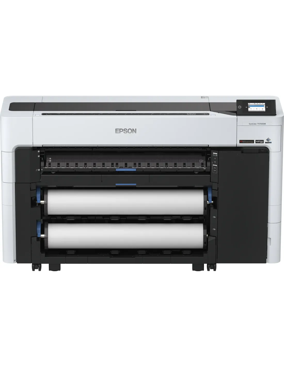 Características de la EPSON SureColor SC-T5700DLa impresora profesional Epson SureColor SC-T5700D está diseñada para entornos que exigen la máxima precisión, fiabilidad y productividad en gran formato. Ideal para sectores como arquitectura, ingeniería, cartografía, diseño o publicidad, esta impresora de 6 colores destaca por su tecnología de tinta avanzada, seguridad profesional y gran capacidad de manejo de soportes.Impresión de alta definición con tinta UltraChrome XD3La SC-T5700D incorpora la tecnología PrecisionCore? TFP junto con tintas UltraChrome® XD3, lo que permite obtener impresiones con un nivel de detalle y viveza excepcionales. La incorporación del color rojo como sexto canal amplía el espacio cromático, ideal para trabajos técnicos o gráficos de alta precisión.Resolución máxima: 2.400 x 1.200 pppTecnología de gotas de tinta de tamaño variable (hasta 3,5 pl)6 colores: Photo Black, Matte Black, Cyan, Magenta, Yellow y Red (cartuchos de 350 ml o 700 ml)Manejo versátil de soportes y doble rolloGracias a su sistema de alimentación doble con recogida automática, la impresora permite cambiar entre diferentes tipos de papel de forma rápida y sin interrupciones. Además, permite la impresión sin márgenes en varios anchos de rollo, aumentando la productividad en trabajos de presentación y cartelería.Anchos de rollo compatibles: 17", 24", 36" (hasta A0)Impresión sin márgenes hasta 91,4 cmRodillo de recogida automático incluido (Auto Take-Up Reel)Seguridad empresarial y conectividad avanzadaLa SC-T5700D está equipada con protocolos de seguridad de nivel empresarial para proteger los datos en entornos corporativos o gubernamentales. La conectividad también está optimizada para flujos de trabajo modernos, incluyendo servicios en la nube y compatibilidad con dispositivos móviles.Seguridad: SNMP v3, IPSec, AES-256, LDAP, SSL/TLS, TPMServicios móviles y en la nube: Apple AirPrint, Epson Cloud Solution PORT, Epson Smart Panel AppAutenticación mediante lector NFC (opcional)Rendimiento y capacidad profesionalEquipada con 4 GB de memoria RAM y soporte opcional de almacenamiento interno SSD de 960 GB, esta impresora está pensada para cargas de trabajo intensivas y archivos complejos. Además, es compatible con varios lenguajes de impresión y software de gestión especializado.Lenguajes: ESC/P, PDF 1.7, HP-GL2, RTL, Adobe® PostScript 3®Software incluido: Epson Print Automate, Mirage, Epson LFP Accounting ToolOpcional: disco SSD, lector NFC, ampliaciones de garantía Cover PlusDimensiones, consumo y eficienciaLa SC-T5700D está diseñada para optimizar el espacio y el consumo eléctrico en oficinas o estudios profesionales. Su estructura robusta asegura un funcionamiento estable durante impresiones prolongadas.Dimensiones: 1.645 x 499 x 975 mmPeso: 132 kgConsumo eléctrico: 80 W en funcionamiento, 32 W modo económicoIncluye en la cajaImpresora Epson SureColor SC-T5700DJuego de tintas inicialCable de alimentación, manual de instalación y seguridadCajas de mantenimiento y ejes de alimentaciónLicencia Adobe PostScript 3Otras especificacionesAncho de línea mínimo: 0,02 mmPrecisión de línea: ±0,26%Capacidad de rollo: hasta 10,2 kg y 170 mm de diámetroOpcional: alimentador para rollo de 91,4 cm
