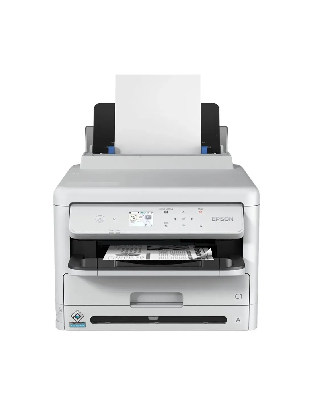 Características de la Epson WorkForce Pro WF-M5399DWLa Epson WorkForce Pro WF-M5399DW es una impresora monocromo de inyección de tinta diseñada para entornos de trabajo exigentes. Pensada como impresora de grupo de trabajo, ofrece alta velocidad, conectividad avanzada y un ciclo mensual elevado, convirtiéndose en una solución eficiente para oficinas que necesitan imprimir grandes volúmenes en blanco y negro con bajo consumo energético.Alto rendimiento y velocidad profesionalGracias a la tecnología Epson PrecisionCore y a sus 1600 inyectores, esta impresora ofrece resultados nítidos y consistentes desde la primera página. Su rápido tiempo de salida y su elevada velocidad de impresión la hacen ideal para flujos de trabajo continuos.Hasta 34 ppm en blanco y negro25 ppm (ISO/IEC 24734) y 16 ppm en dúplex (ISO)Primera página en solo 4,8 segundosResolución máxima: 1.200 x 2.400 pppImpresión eficiente y de alta capacidadPreparada para volúmenes elevados, la WF-M5399DW ofrece un ciclo mensual máximo de 75.000 páginas y un volumen recomendado de entre 500 y 5.000 páginas mensuales. Su sistema de bandejas permite una gestión flexible del papel.Bandeja de entrada de 250 hojasBandeja multifunción de 80 hojasCapacidad total estándar: 330 hojas (hasta 1.830 hojas máx.)Bandeja de salida de 150 hojasConectividad avanzada y seguridad empresarialEquipada con Wi-Fi (ac), LAN Gigabit y USB 2.0, esta impresora se integra fácilmente en redes corporativas. Es compatible con AirPrint y permite impresión desde dispositivos móviles, facilitando el trabajo híbrido y colaborativo.Interfaz: USB 2.0, Gigabit LAN, Wi-Fi (ac)Compatible con AirPrint e impresión móvilCompatibilidad IPv4 e IPv6Protocolos de seguridad avanzados: WPA3-SAE, IPsec, TLS, SNMP 3, 802.1xTecnología de tinta profesionalUtiliza tintas Epson DURABrite Ultra junto con la tecnología Variable-sized Droplet, que ajusta el tamaño de la gota hasta un mínimo de 3,8 pl para obtener textos definidos y resultados uniformes en distintos tipos de papel.Tinta negra DURABrite Ultra incluidaTamaño mínimo de gota: 3,8 plCompatibilidad con papel de 64 g/m² a 256 g/m²Admite sobres, etiquetas, papel satinado y recicladoEficiencia energética y diseño robustoDiseñada para un uso continuo, incorpora fuente de alimentación interna y un consumo optimizado que ayuda a reducir costes operativos.Consumo en funcionamiento: 25 WModo espera: 9,8 WModo apagado: 1,1 WDimensiones: 42,5 x 53,5 x 35,7 cmPeso: 15 kgCompatibilidad amplia con sistemas operativosLa WF-M5399DW es compatible con una amplia gama de sistemas Windows y Mac, incluyendo Windows 10, Windows 11 y macOS 11 o posterior, además de diferentes versiones de Windows Server, lo que facilita su integración en entornos profesionales heterogéneos.Compatible con Windows 7, 8, 8.1, 10 y 11 (32/64 bits)Compatible con múltiples versiones de Windows ServerCompatible con macOS 10.9.5 o posterior y macOS 11 o posteriorIncluye controladores y utilidades