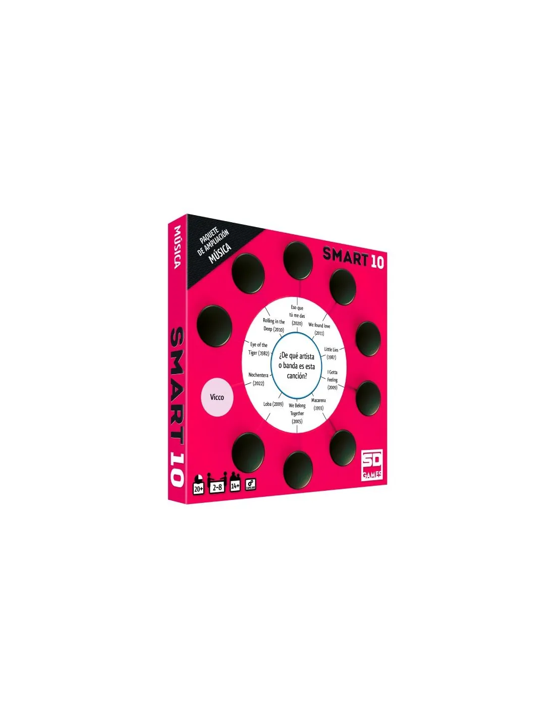 ¡Un nuevo conjunto de tarjetas de preguntas para el juego SMART 10!Contiene 50 tarjetas de doble cara con 100 nuevas preguntas y 1000 nuevas respuestas. Las preguntas abarcan todos los aspectos relacionados con la música: artistas, canciones, historia...Reemplazad las tarjetas de preguntas en la caja Smart con dos paquetes de ampliación temáticos o mezclad estas preguntas de música con la mitad de las tarjetas originales.Para poder usar estas preguntas se requiere tener el juego la caja Smart incluida en cualquier juego base de Smart10.Nota del editor: Nos encanta jugar con un reproductor de música y recordar las canciones de las preguntas... ¡aunque se nos alarguen las partidas cantando!