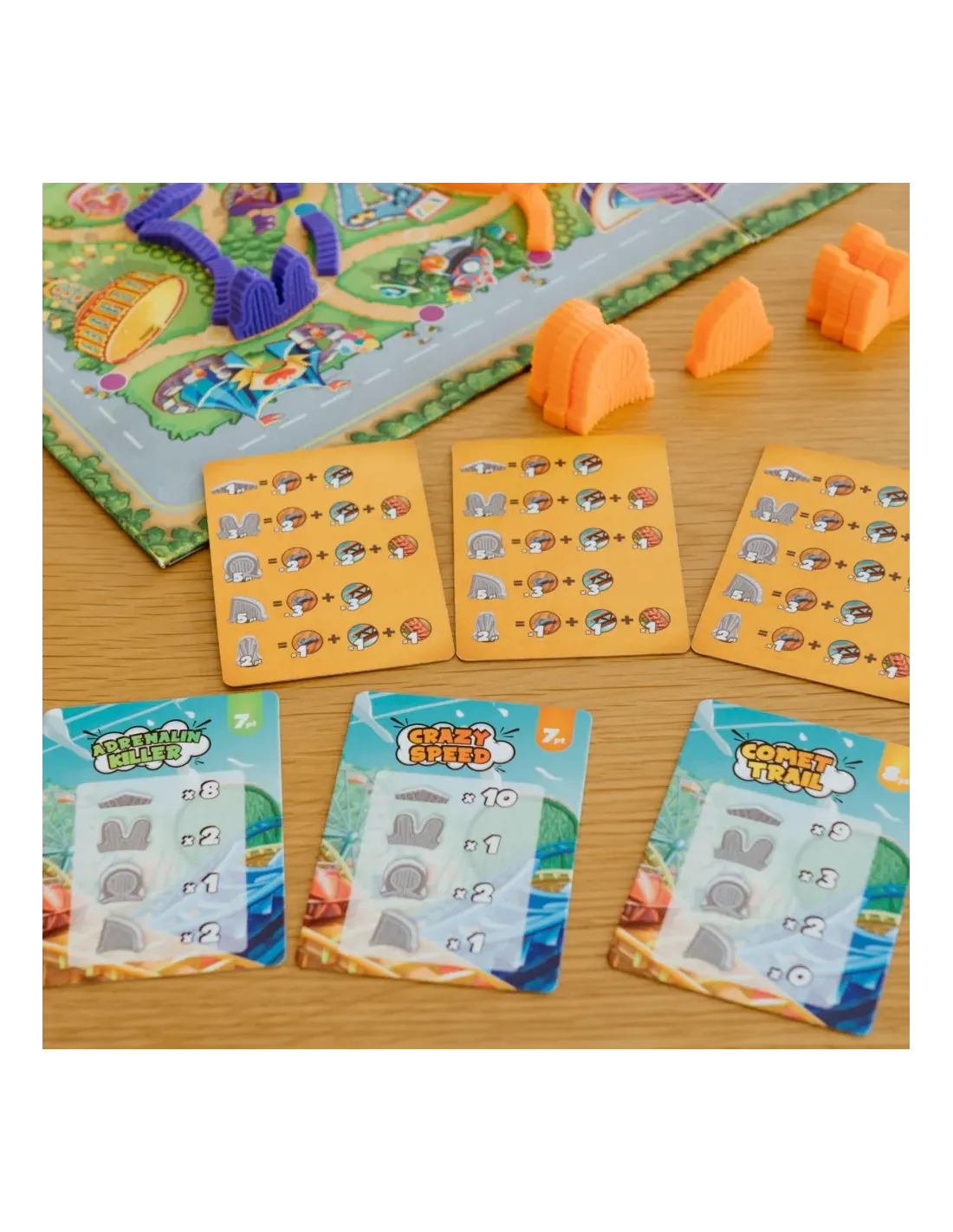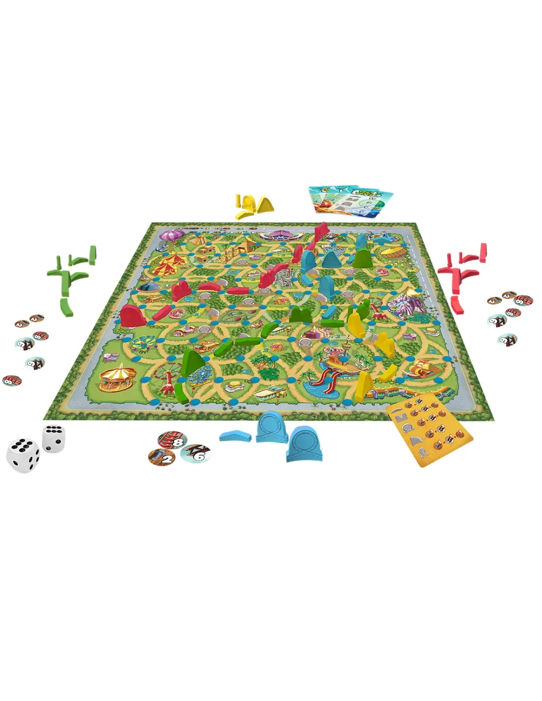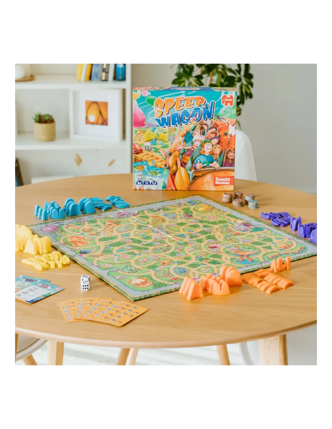 ¡Sube y disfruta de este emocionante viaje!Speedwagon es un juego de mesa familiar en el que se compitecontra otros jugadores para construir la montaña rusa másemocionante de todas.¡Elije la ubicación, consigue materiales y planifica tu construcción paracrear la atracción más alucinante y sorprendente! Gana puntossiendo el primer jugador en completar tu carta ¡Quien obtenga máspuntos gana el juego!Estimula la sociabilidad y diversión.La caja incluye:Tablero de juego, 8 cartas proyecto, 94 fichas de material, 2 dados,112 piezas de montaña rusa en 4 colores distintos.Instrucciones del juego.
