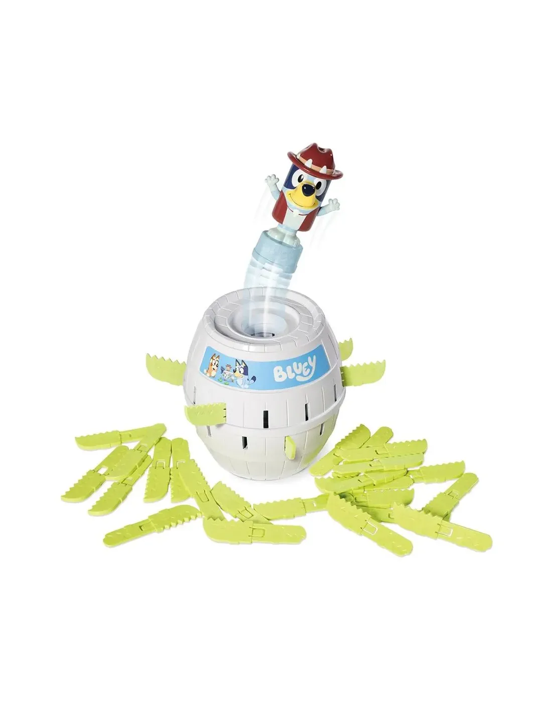 - MARCAJuegos- CATEGORÍAJuegos de habilidad y acción- REFERENCIA30693659- EAN8432752050460- CONTENIDO DEL JUEGO1 barril 24 espadas de cocodrilo 1 figura de Bluey- NÚMERO DE JUGADORES2 a 4 jugadores- MECÁNICA DEL JUEGOLos jugadores insertan espadas en el barril una a una En algún momento, una espada hará saltar a Bluey por los aires El objetivo es evitar ser el jugador que hace saltar a Bluey- EDAD RECOMENDADAA partir de 4 años