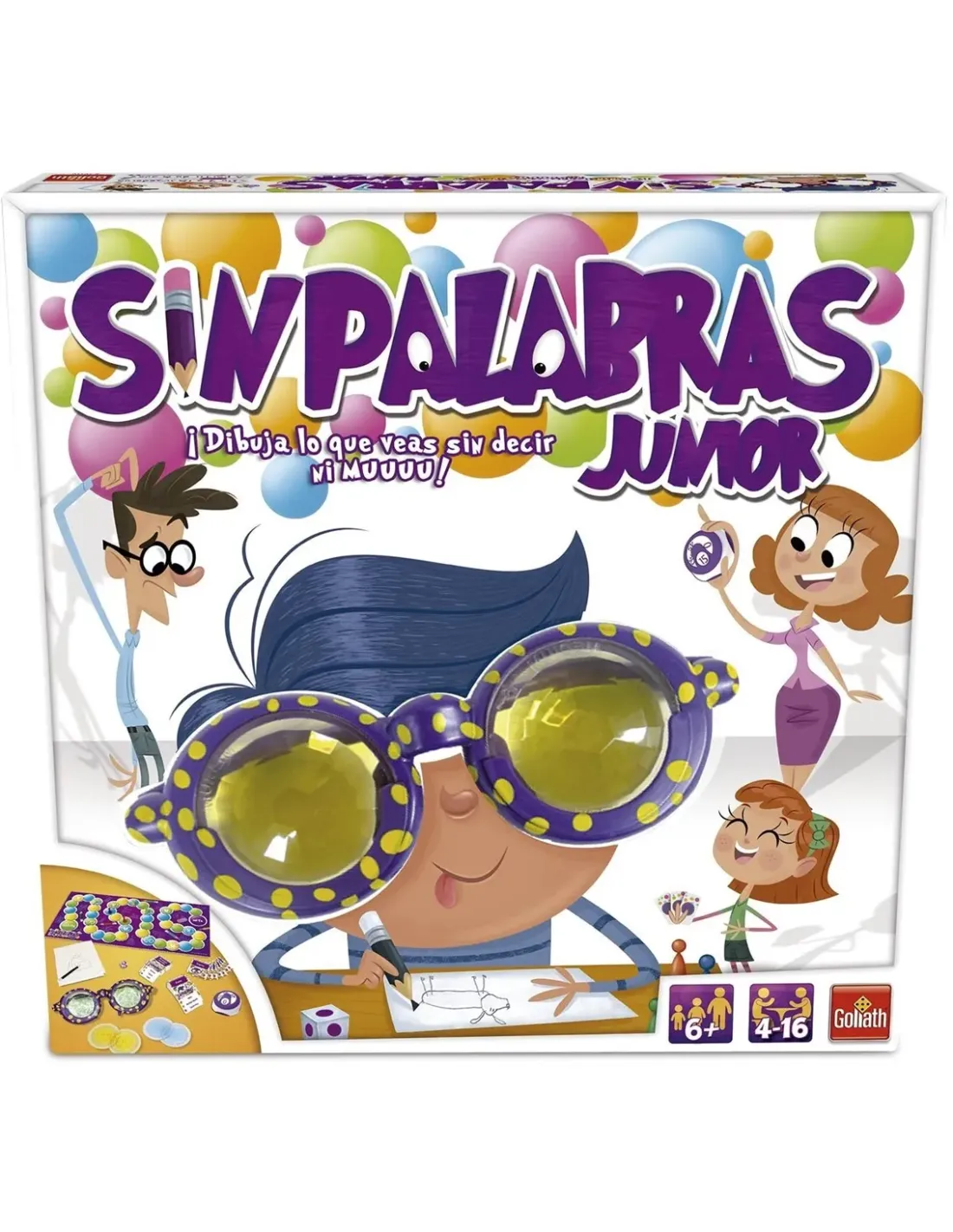 ¡Sin Palabras Junior es un juego de habilidad en el que tendrás quedibujar para que los demás jugadores adivinen tus cartas! ¿Creesque serás capaz?El objetivo del juego es ser el primer equipo en llegar a la ultimacasilla del tablero.Durante la partida puedes encontrarte pruebas con 3 tipos de lentesdiferentes. El color verde indica que es fácil, el amarillo dificultadmedia y el azul difícil.Recomendado para mayores de 5 años ¡Es adecuado para 3 a 12jugadores, y es muy fácil y cómodo de transportar, por lo que podrásllevártelo donde quieras!