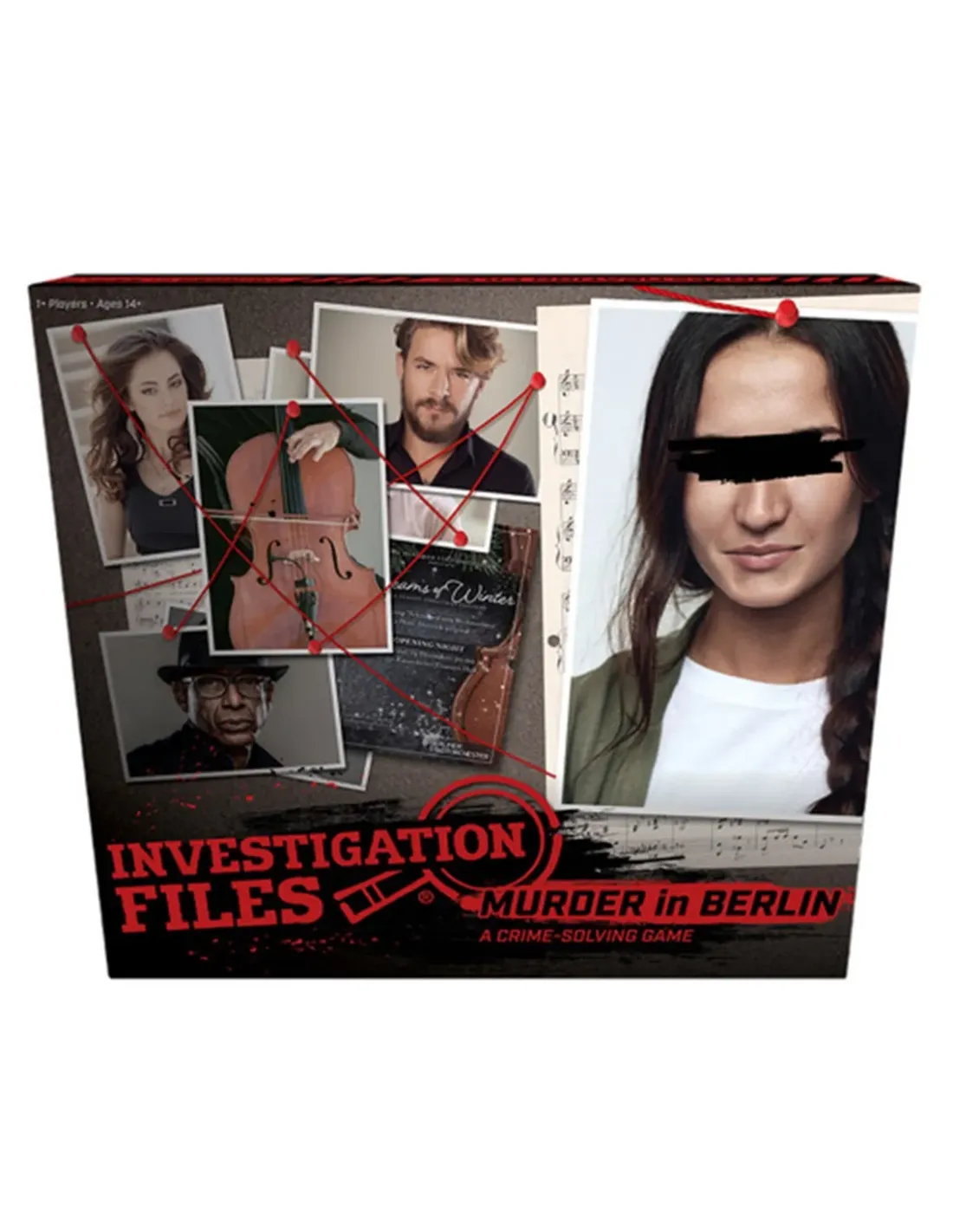 Todo lo necesario para resolver el crimen: Informe de la autopsia, recortede periódico, interrogatorios policiales, declaraciones de testigos, fotos depruebas, anónimo, plano del auditorio, mapa de Berlín, partitura, pruebasrecopiladas, hoja de fichaje del auditorio, pistas y soluciones condecodificador y carta de confesión.Has escogido colaborar en uno de los casos de Investigation Files, laemocionante serie de juegos de resolución de crímenes. Tras Asesinato enParís, llega Asesinato en Berlín, donde podrás resolver un crimen ficticiojunto a una agencia internacional de detectives llamada La Liga.