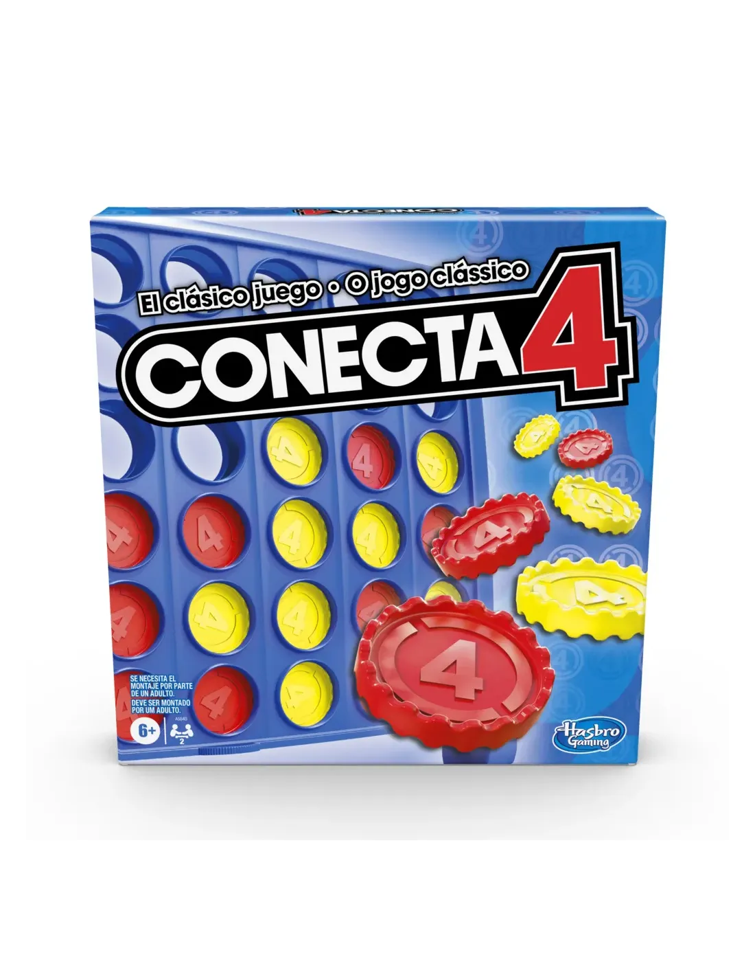 ¡El juego Conecta 4 es un clásico juego de estrategia en el que 2 jugadores se enfrentan en un combate cabeza a cabeza por dominar la cuadrícula! Los jugadores eligen discos amarillos o rojos. Dejan caer los discos en la cuadrícula, y comienzan en el centro o en el borde para apilar sus discos de color hacia arriba, en horizontal o en diagonal. Utiliza la estrategia para bloquear a los oponentes mientras intentas ser el primer jugador en conseguir 4 en una fila para ganar. El juego Conecta 4 es una excelente opción para una cita de juego, una actividad en un día lluvioso o en cualquier momento en que tus hijos quieran divertirse jugando con un amigo. ¡Es divertido ir a por la victoria! Para mayores de 6 años. Hasbro Gaming y todas las marcas y los logotipos relacionados son marcas registradas de Hasbro, Inc.