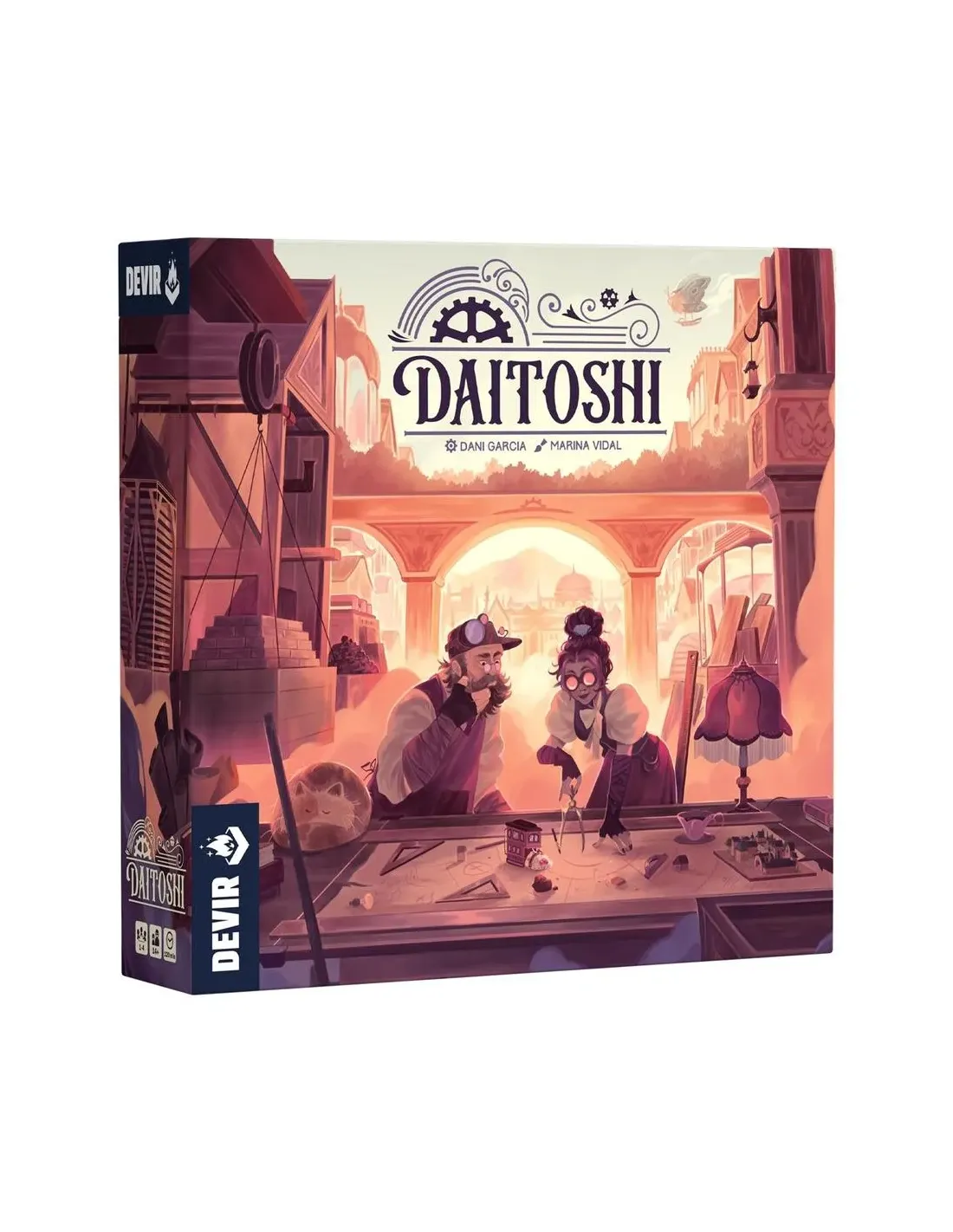 ¡Por fin hemos perfeccionado el poder del vapor y ahora podemos usarlo a nuestro favor! Vivimos en una era de progreso sin precedentes y los nuevos inventos impulsados por vapor se desarrollanmás rápido que nunca. Las ciudades crecen, el comercio florece y estamos desarrollando nuestra máquina más ambiciosa hasta la fecha, un artilugio gigante que traerá aún más progreso a la ciudad.Sí, se están talando algunos árboles y el río no fluye tanto como antes, pero todavía hay abundancia de vegetación y agua, y podemos usar el espacio adicional para expandir nuestra ciudad. Quién sepreocupa hoy en día por esas viejas leyendas sobre espíritus ancestrales? Diseñado por Dani García (autor de juegazos como Barcelona o Arborea) e ilustrado por Marina Vidal, Daitoshi se puededisfrutar solo o en grupos de hasta 4 jugadores, a partir de 14 años, en partidas de unas 2 horas de duración. Los jugadores competirán para sumar el máximo número de puntos de victoria a lo largode una serie de rondas. En tu turno, producirás bienes en tu fábrica (y así ganarás recursos) o trasladarás a tu magnate a un nuevo distrito del tablero central para realizar una acción. Estas acciones,sin embargo, siempre repercutirán en el entorno, dañando el subsuelo, las montañas, el bosque o el río. A cambio, contratarás nuevos trabajadores y podrás ampliar la ciudad, electrificar un distrito,comerciar con otras ciudades o conseguir nuevas patentes para mejorar tu fábrica y así producir más en turnos posteriores. Estas acciones no sólo te ayudarán en tu búsqueda de reconocimiento (o loque es lo mismo, sumar puntos de victoria para ganar), sino que ayudarán a todos los habitantes de la gran ciudad. Incluso puedes contribuir a construir un gigantesco proyecto, la megamáquina. Esposible que algunos bosques sean talados y algunos ríos se sequen, pero en tu generosidad ayudarás a los trabajadores desplazados de esas áreas brindándoles nuevos trabajos a tu servicio. Viejasleyendas sugieren que los bosques y ríos están custodiados por Ykai, pero el progreso no se puede detener debido a algunos viejos cuentos de hadas. Sin embargo, por si acaso, sería prudenteparticipar en algunos proyectos de reforestación y ocultar tu participación en el abuso de los recursos naturales. Ideal para jugadores experimentados, Daitoshi forma parte de la Kemushi Saga, ununiverso temático que engloba varios juegos de mesa como Bitoku, Bamboo, Sand, Yokai Sketch o Silk. Con un arte evocador, inspirado en referentes como las películas del estudio Ghibli, los distintosjuegos son como piezas de un gran puzle que, una vez montado, cuenta una gran historia. ¡Usa el poder del vapor para hacer negocios y ampliar tu fábrica en la gran ciudad!Número de jugadores Min:1 Máx:4Tiempo de juego 120 minutosEdad recomendada 14Idioma Castellano, catalán y inglés