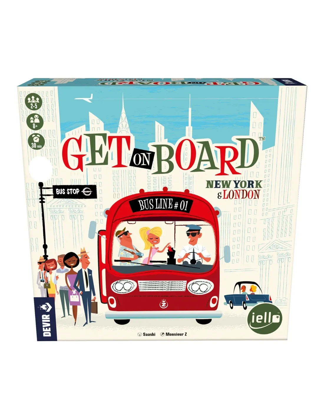 Las dos grandes metrópolis del mundo moderno, Londres y Nueva York, llevan un ritmo frenético. Un montón de gente quiere ir de un lugar a otro ¡Y tú tienes la solución! En Get on board deberás crearla mejor línea de autobuses en una de estas dos ciudades, intentando llevar el mayor número de pasajeros, parando en los lugares más interesantes y evitando los molestos atascos de tráfico.Diseñado por Saashi y con ilustraciones de Monsieur Z, Get on board es un juego en el que pueden participar de 2 a 5 jugadores, a partir de 8 años, en partidas de unos 30 minutos de duración. Conunas reglas sencillas de aprender, enseguida empezaréis la partida. La mecánica principal de Get on board es el flip and write (voltear y escribir) ya que a lo largo de la partida daremos la vuelta a unaserie de cartas (billetes de autobús, en el juego) y anotaremos en nuestra hoja personal los encuentros que llevemos a cabo. En función del número de jugadores, se prepara el tablero por la cara deLondres o la de Nueva York. Cada participante toma las fichas de su color... ¡Y que empiece la partida! El tablero central muestra un mapa de las calles de Londres o de Nueva York por las queintentaremos trazar una ruta que nos reporte el máximo de puntos posibles. En las intersecciones encontraremos pasajeros y monumentos, que nos darán puntos, pero también semáforos en verde, quenos permitirán ampliar la ruta. Sin embargo, los atascos de tráfico no son buenos para el negocio. Siempre que una ruta sea compartida por varios jugadores o pase por un tramo negro, perderemospuntos. Las partidas se juegan a lo largo de 12 rondas o vueltas y en cada una de ellas se usa una nueva carta de billete. Esta carta indicará qué forma debe adoptar la ruta para cada jugador durante esavuelta. De este modo, poco a poco se irá llenando el tablero de fichas de ruta y se irán obteniendo las bonificaciones. Dependiendo del tipo de pasajeros que suban al autobús, se podrán acumular máso menos puntos. Además, también hay objetivos comunes y personales, que permitirán ganar puntos siempre que se cumplan ciertos requisitos. Get on board es un título de estrategia urbana perfectopara jugar tanto con la familia como con los amigos. Las partidas son rápidas y dinámicas, con muchas opciones distintas de sumar puntos para los jugadores. Te centrarás en cumplir rápido losobjetivos comunes para reclamar una recompensa mayor? O preferirás acumular pasajeros que te otorguen más bonificaciones? Sea como sea, siempre será buena idea prestar atención a lasacciones de los rivales para intentar adivinar sus estrategias. ¡Súbete a los mejores autobuses de la ciudad y disfruta del progreso a toda velocidad!NÚMERO DE JUGADORES De 2 a 5 jugadoresTIEMPO DE JUEGO 30 minutos.EDAD RECOMENDADA 8IDIOMA Castellano y portugués