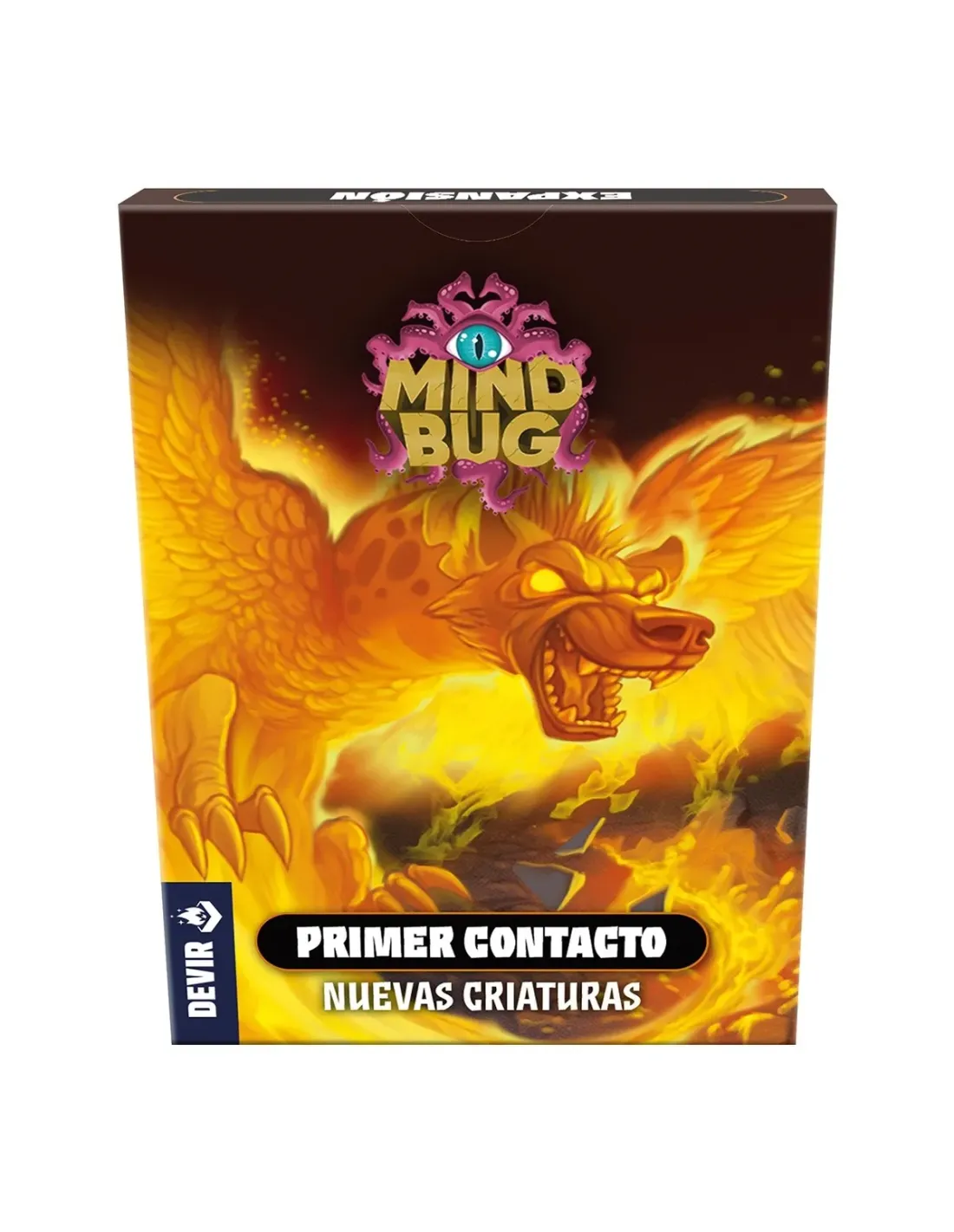 ¡El universo de Mindbug se multiplica! Primer contacto es una expansión para Mindbug que añade 28 cartas al juego base. Esta nueva baraja amplía el número de criaturas disponibles, lo que asegurauna mayor variedad en cada partida y expande las posibilidades estratégicas al alcance de los jugadores. Obra del legendario Richard Garfield, creador entre otros muchos juegos del célebre Magic: TheGathering o King of Tokyo, Mindbug es un juego de cartas para dos jugadores, a partir de 8 años, que permite partidas de entre 15 y 25 minutos. Si crees que ya lo sabes todo sobre Mindbug, que yaconoces todas las combinaciones posibles, que ninguna criatura puede sorprenderte... Prepárate para dar la bienvenida al león hámster, al langostauro surfista o al goriláguila alfa, entre otras maravillasde la genética. De nuevo, convocarás criaturas únicas y las usarás para combatir y vencer a tu oponente en un duelo de alta intensidad estratégica. Pero ten cuidado, pues en cualquier momento tu rivalpuede usar uno de sus Mindbug para tomar el control de tus monstruos. En su turno, los jugadores podrán hacer una de las siguientes acciones: jugar una carta o bien atacar con una criatura. Si optanpor la primera opción, deberán bajar una de las cartas de la mano a la zona de juego. A continuación, el rival deberá decidir si usa uno de sus Mindbug. En el caso de que decida hacerlo, tomará el controlde la criatura y resolverá sus efectos como si la acabase de jugar desde su mano. A cambio, el jugador activo que ha perdido el control de su carta puede volver a jugar un turno. Por otro lado, si eljugador decide atacar, deberá elegir una de las cartas de la zona de juego para luchar. El oponente deberá seleccionar una de sus criaturas para bloquear el golpe o perder una vida. Si se enfrentan dosmonstruos, ganará el que tenga el valor de poder más alto. Y si uno de los jugadores pierde sus 3 puntos de vida ¡Se acabó lo que se daba! Las cartas que forman el juego tienen habilidades distintasque se adaptan a infinitas estrategias. El frenesí permite a un monstruo atacar dos veces, el sigilo hace que solo otras criaturas sigilosas le puedan bloquear, los cazadores pueden atacar a cartas deloponente En una sola partida ambos jugadores solo usan 20 cartas (10 cada uno), con lo que siempre quedarán criaturas fuera y, por tanto, las combinaciones de monstruos serán únicas y aleatoriasen cada duelo. Mindbug combina la accesibilidad y el equilibrio de todo juego de naipes con la profundidad de un juego estratégico de cartas. El resultado es un duelo de habilidad con un punto bizarroque no se parece a ningún otro juego de cartas que hayas probado. Con esta expansión añadirás rejugabilidad a tus partidas, creando combinaciones de cartas nunca vistas hasta ahora. Aunque seamuy fácil aprender y empezar a jugar, Mindbug hará volar tu mente con la cantidad de combos que ofrece. Una de las mecánicas más especiales del juego te permite controlar las cartas de tu rival, con loque incluso los más veteranos deberán adaptarse a cada situación si quieren ganar. No solo juegas con tus 10 cartas, también lo haces con las del rival. Y no basta con tener las mejores cartas ¡Si nosaber cuándo hay que jugarlas!NÚMERO DE JUGADORES Min:2 Máx:2TIEMPO DE JUEGO 20 minutos.EDAD RECOMENDADA 8IDIOMA Castellano