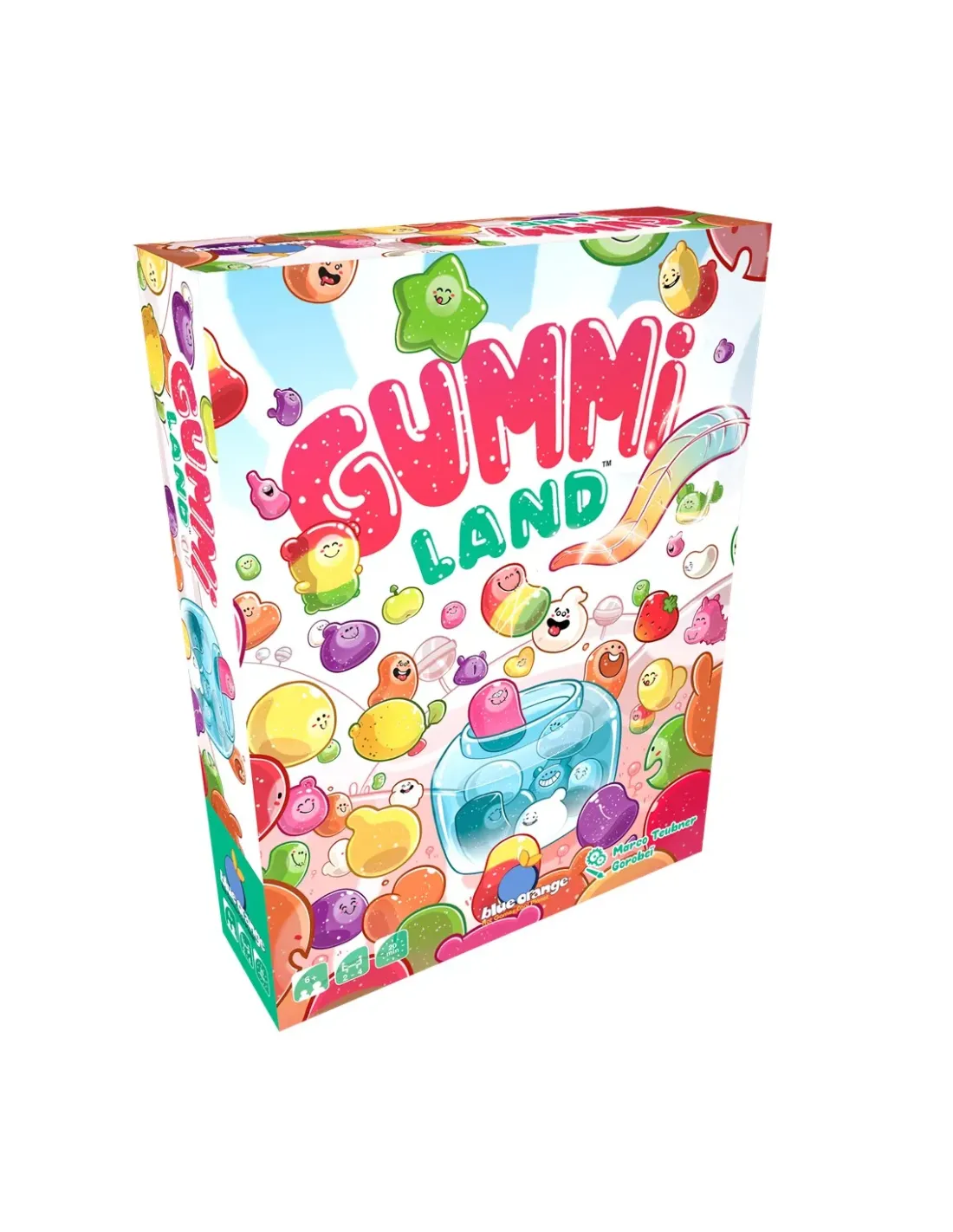 Bienvenidos a la tierra de los Gummiz donde viven estas dulces criaturas. A los Gummiz les encantan las frutas y pasan todo su tiempo cultivándolas. ¡Son grandes amantes de la comida! ¿Ysabías que puedes domesticarlos?¡Atrae a los Gummiz salvajes con deliciosas frutas y añádelos a tu Gummibox! ¡Hazles cosquillas para que salgan de su escondite y te ayuden a atrapar a nuevos Gummiz!CONTENIDO80 fichas de Gummiz: 24 fichas iniciales (6 por jugador) con un lado de Gummiz domesticado (fondo azul claro) y por el otro el color del jugador, 4 Gummibox en 4 colores, un color por jugador, 32 fichascon un lado de Gummiz salvaje (fondo rojo) y el otro de Gummiz domesticado (fondo azul claro), 3 cajas de 8 fichas de Gummiz exóticos (solo se usan en el modo Aventura), 1 Pluma de madera parahacer cosquillas a los Gummi.Título GummilandReferencia BO06151ESFecha de lanzamiento 15/09/2023Editorial Blue OrangeCategoría Juego de tableroColección GummilandIdioma EspañolEdad mínima recomendada 6 añosDuración 20'Número de jugadores 2 a 4