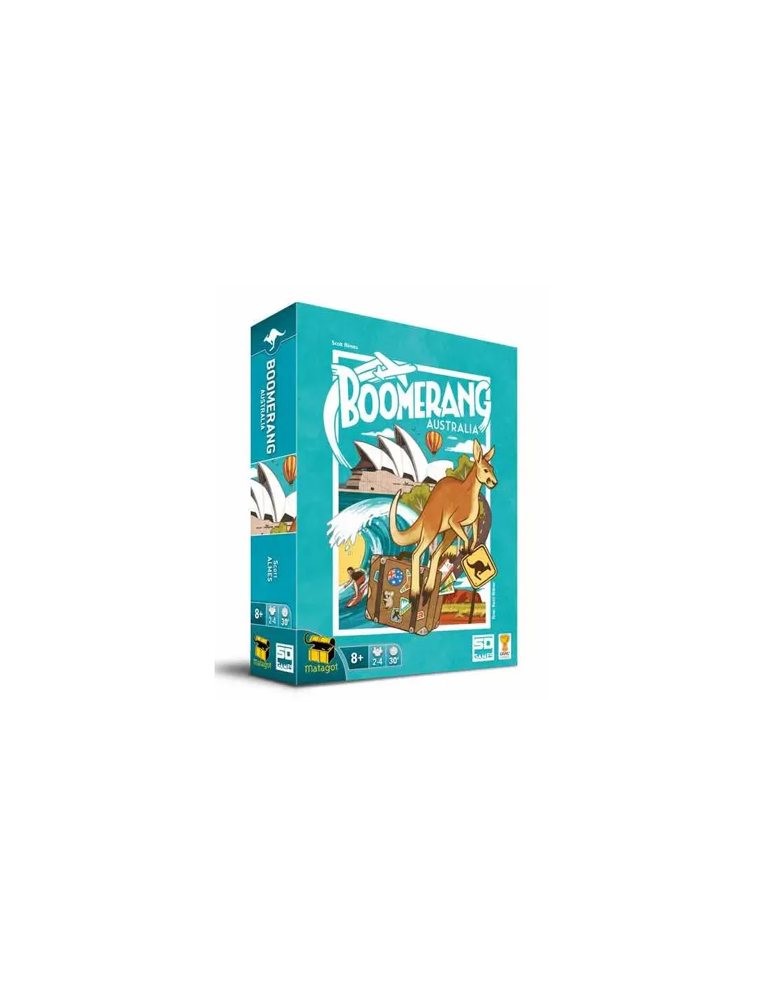 ¡Bienvenidos a Boomerang! En este juego viajaréis a Australia, dondeintentaréis ver y hacer todo lo posible antes de que terminen vuestrasvacaciones. Obtendréis puntos por avistar animales autóctonos,coleccionar piezas de Australiana y realizar diferentes actividadesvacacionales. En cada ronda, los jugadores seleccionarán cartas eirán anotando logros en sus hojas de puntuación. Al final de la partida, elmejor viajero será el ganador. ¡Disfrutad del paisaje!COMPONENTES: 28 Cartas, 4 Lápices y 1 Bloc de Puntuación.Edad Recomendada : 8 o másDuración Partida: 30 min.Jugadores: 2 a 4