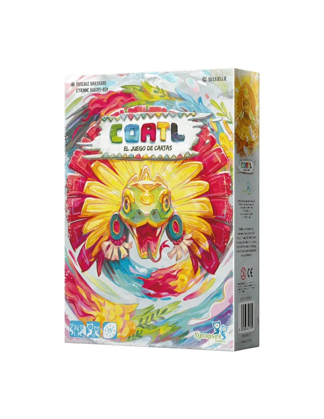 En el corazón de la ciudad azteca se está erigiendo un templo en honor alos dioses. Un templo cuyas paredes se adornarán con pinturas deserpientes emplumadas para ensalzar a las divinidades. La competiciónpara elegir a la persona que decorará el templo con sus obras está a puntode comenzar. ¿Lograrás que tus pinturas sean las mejores?Juega cartas y pinta tu coatlCumple con las profecías ¡y hazte con las de tus rivales!CONTENIDO· 50 cartas de Plumas· 40 cartas de Cabeza y Cola· 40 cartas de Profecía· 6 cartas de Templo· 4 cartas de Nivel· 8 segmentos Dorados· 2 reglamentosNOTAIncluye la expansión Plumas doradas para el juego de mesa Coatl.Título Coatl: El juego de cartasReferencia CCG01SPFecha de lanzamiento 26/08/2022Editorial Synapses GamesCategoría Juego de tableroColección CoatlIdioma EspañolEdad mínima recomendada 10 añosDuración 25'Número de jugadores 1 a 4EAN 8435407640771