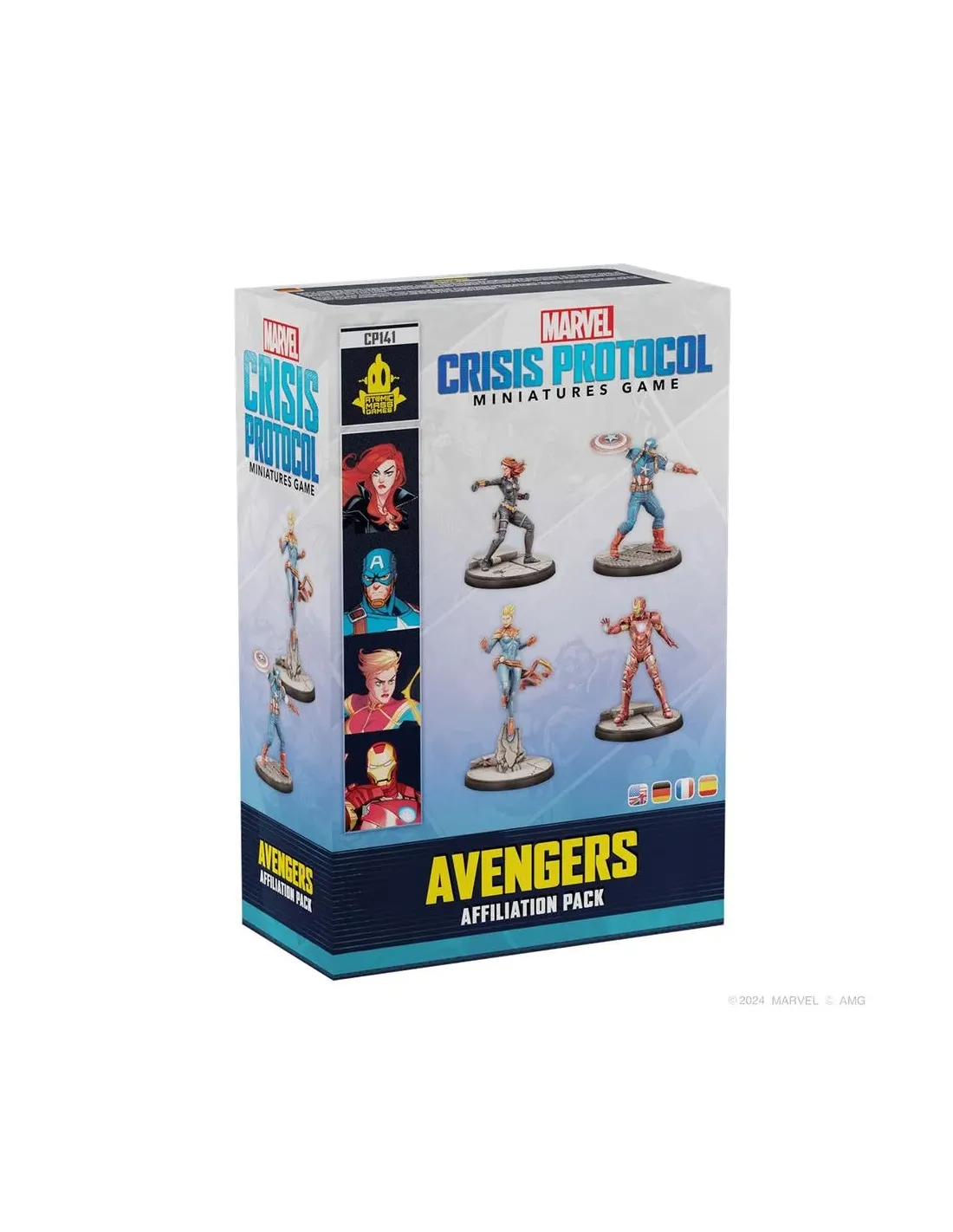 ¡Vengadores, reuníos!Los héroes más poderosos de la Tierra cuentan entre sus filas con toda clase de gente: desde personalidades de la mayor eminencia hasta personas corrientes de la calle. Sin embargo, lo que losune a todos es ese profundo sentido del compañerismo que mantiene al grupo unido cueste lo que cueste. El compromiso de estos peculiares guerreros es imperecedero, por lo que ningún ardidideado por quienes pretenden conquistar la Tierra conseguirá que los Vengadores cejen en su empeño de proteger su mundo.Recluta a tus propios Vengadores para tus partidas de Marvel: Crisis Protocol con el Paquete de Afiliación Vengadores. Dentro de esta caja encontrarás miniaturas altamente detalladas de un grupoinicial formado por Viuda Negra, Capitán América, Capitana Marvel y Iron Man, así como cartas de atributos de Personaje y cartas de Tácticas de equipo con las que tu Escuadra estará lista paradefender la Tierra.CONTENIDO1 miniatura de Viuda Negra, 1 miniatura de Capitán América, 1 miniatura de Capitana Marvel, 1 miniatura de Iron Man, 4 peanas, 4 cartas de atributos de Personaje, 3 cartas de Tácticas de equipo