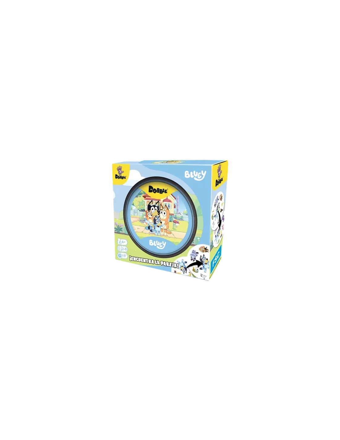 Características del Juego de Mesa Dobble BlueyEl **Dobble Bluey** es una versión especial del popular juego de observación y velocidad, ahora con los entrañables personajes de la serie animada Bluey. Diseñado para niños a partir de 4 años, este juego es perfecto para sesiones rápidas y divertidas en familia. Con partidas dinámicas y 5 variantes incluidas, cada ronda ofrece una experiencia diferente y entretenida.Un solo objetivo: ¡encuentra el símbolo coincidente!Dobble es un juego que pone a prueba tu **agudeza visual y rapidez de reacción**. Cada carta contiene varios símbolos, pero sólo hay **una coincidencia exacta entre cada par**. Quien la detecte primero, gana la ronda. Esta edición de Bluey está ilustrada con los personajes y objetos más reconocibles de la serie, haciendo que los niños se conecten rápidamente con el juego.Incluye 55 cartas ilustradasDinámico, educativo y fácil de aprenderIdeal para niños a partir de 4 años5 variantes para más diversidad y rejugabilidadUna de las ventajas clave de Dobble Bluey es que no se limita a un solo modo de juego. Con **5 variantes distintas**, los niños pueden disfrutar de nuevas reglas y desafíos que mantienen la experiencia siempre fresca. Además, su formato compacto permite llevarlo a cualquier parte: en viajes, vacaciones o visitas familiares.5 formas diferentes de jugarPartidas cortas y muy rejugablesFomenta la concentración y la rapidez mentalContenido del juego55 cartas con ilustraciones de Bluey, Bingo, Chilli, Bandit y sus amigosInstrucciones con 5 variantes de juegoOtras especificacionesEdad recomendada: desde 4 añosNúmero de jugadores: 2 a 5Duración media por partida: 10 a 15 minutosFabricante: AsmodeeFormato de caja: compacta y fácil de transportar