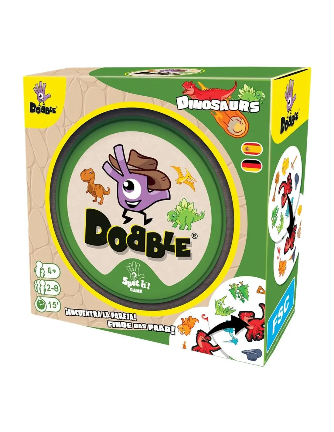 -GENERALTítulo: Dobble Dinosaurs Referencia: DOBDIN07ESDE Editorial: Zygomatic Categoría: Juego de Cartas Colección: Dobble Idioma: Español / Alemán Fecha de lanzamiento: 18/04/2025-DESCRIPCIÓN¡Encuentra la pareja! Sencillo, rápido y divertido: Dobble es el juego definitivo de observación y velocidad para todos. Encuentra antes que nadie el único símbolo idéntico entre 2 cartas para ganar una carta o librarte de ella. Incluye 5 variantes para que cada partida sea distinta.-CONTENIDO55 cartas-EDAD Y DURACIÓNEdad mínima recomendada: 6 años Duración aproximada: 15 minutos-NÚMERO DE JUGADORESDe 2 a 8 jugadores