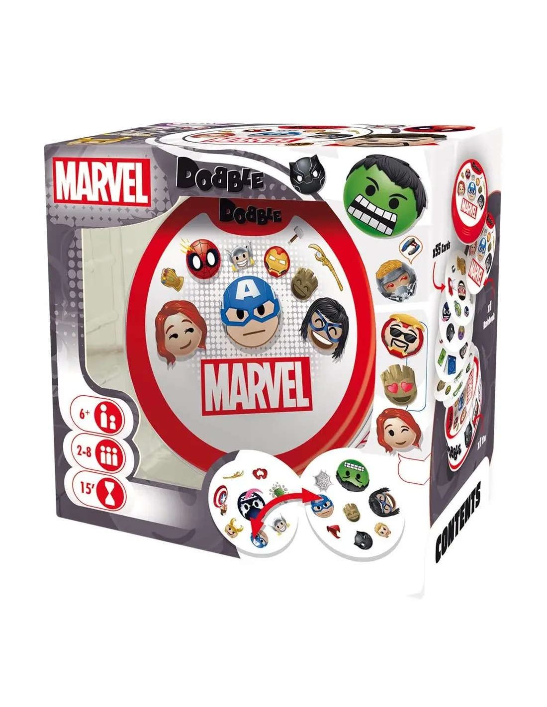 Encuentra la pareja!En Dobble, siempre hay 1 símbolo, y sólo 1, que se repite entre 2 cartas. ¡Encuéntralo antes que tus adversarios y gana!CONTENIDO55 cartas, 5 juegos rápidos y divertidos.Título Dobble Marvel EmojiReferencia DOBMAR01ESFecha de lanzamiento 12/04/2024Editorial ZygomaticCategoría Juego de CartasColección DobbleIdioma Español/PortuguésEdad mínima recomendada 6 añosDuración 15'Número de jugadores 2 a 8EAN 3558380090533