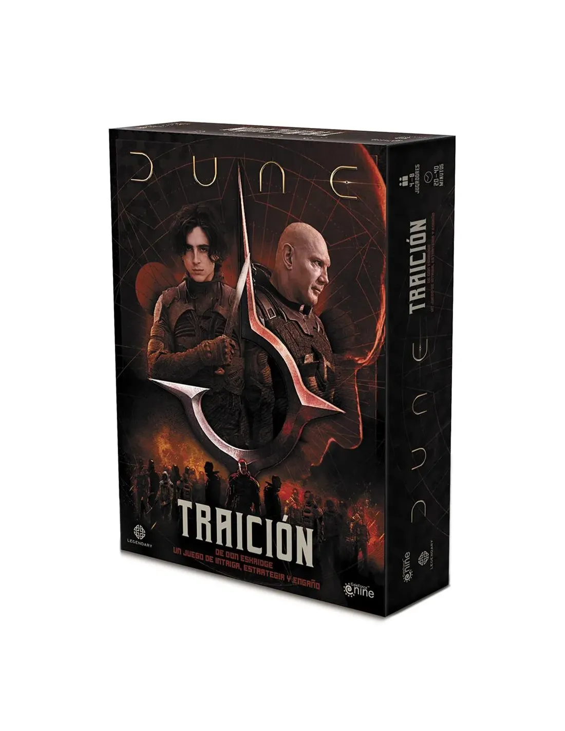 Eres leal a la noble Casa de los Atreides o un agente secreto de latraicionera Casa de los Harkonnen?Tu objetivo es descubrir las identidades de tus enemigos mientras protegesa los nobles de tu casa. Consigue la ayuda de extrañas herramientasavanzadas y aliados para obtener poder e información.Actúa con astucia, pero también con pragmatismo y, sobre todo, ¡séconvincente! Oculta tu verdadera naturaleza mientras descubres la de losdemás.En las rondas finales de la batalla, tendrás que confiar en tu instinto.A quién vas a defender y a quién vas a apuñalar por la espalda?El destino de Dune dependerá de ti. Emprende una nueva aventura con estenuevo juego de deducción social que da una vuelta de tuerca a los clásicos,Dune: Traición.CONTENIDO1 tablero1 reglamento78 cartas1 hoja de fichasTítulo Dune: TraiciónFecha de lanzamiento 21/01/2022Editorial Gale Force NineCategoría Juego de tableroColección Dune: TraiciónIdioma EspañolEdad mínima recomendada 14 añosDuración 2-3 H.Número de jugadores 4 a 8