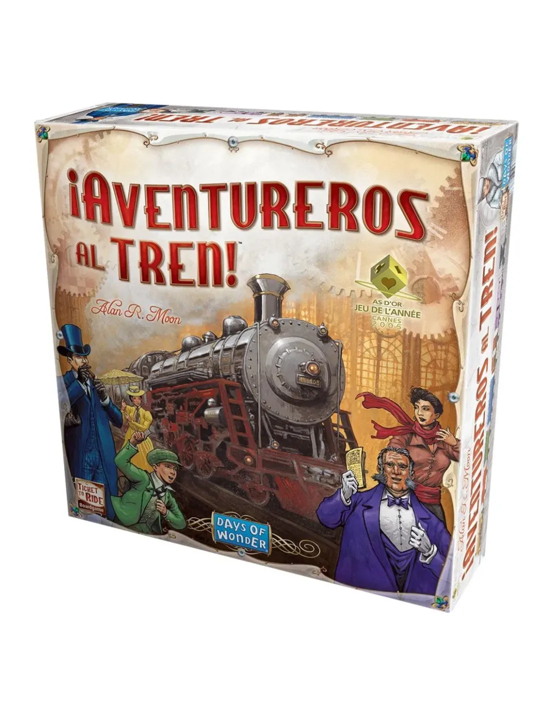 2 de octubre, 1900. 28 años después de que ese excéntricolondinense, Phileas Fogg, aceptase un reto que le haría ganar 20.000libras: dar La vuelta al mundo en 80 días. Ahora, en el amanecer de unnuevo siglo, es el momento de emprender un viaje aún másimposible. Unos viejos amigos se han reunido para celebrar laimpetuosa y lucrativa apuesta de Fogg, y para proponer una nueva. Elpremio: 1 millón de dólares para el ganador. La apuesta: comprobarquién es capaz de visitar en tren más ciudades norteamericanas, ensólo 7 días. El viaje comienza ya...¡Aventureros al Tren! es un juego de aventuras en tren. Losjugadores acumulan cartas de ciertos tipos de vagones que lespermiten conectar diferentes ciudades a lo largo y ancho deNorteamérica. Mientras más largos son los recorridos, más puntosse ganan. Quienes consigan cumplir con sus Billetes de Destinoconectando dos ciudades lejanas, y quien consiga construir la rutaferroviaria continua más larga, ganarán puntos adicionales. Vesubiendo a bordo para pasar un buen rato, porque el viaje comienzaya... ¡Aventureros al Tren!CONTENIDO1 Tablero con las rutas ferroviarias de Norteamérica, 240 Vagones detren de colores, 110 Cartas de Vagones, 30 Billetes de Destino, 1Carta de Resumen de Reglas, 5 Marcadores de Puntuación demadera, 1 Libro de reglas.Título ¡Aventureros al Tren!Editorial Days of WonderColección ¡Aventureros al Tren!Idioma EspañolEdad mínima recomendada 8 añosDuración 30-60'Número de jugadores 2 a 5