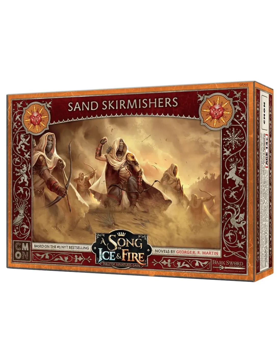 Los Escaramuzadores de Arena de la Casa Martell convierten su doctrina de alta movilidad en una danza mortal de espada y arco. Su armadura ligera les permite una velocidad superior, rivalizando con lade las unidades enemigas más rápidas, y su entrenamiento les permite atacar y desvanecerse mortalmente, todo bajo una lluvia de flechas entrantes. Si están atrapados en un cuerpo a cuerpoprolongado, los Guerrilleros pueden defenderse tan bien como cualquier unidad ligera, pero un comandante inteligente los liberará lo antes posible, permitiendo que su baile comience de nuevo.Funcionan particularmente bien atacando líneas enemigas que ya están enzarzadas con Martell Spearmen.CONTENIDO12 escaramuzadores de arena, 1 carta de unidad, 1 bandeja de movimiento