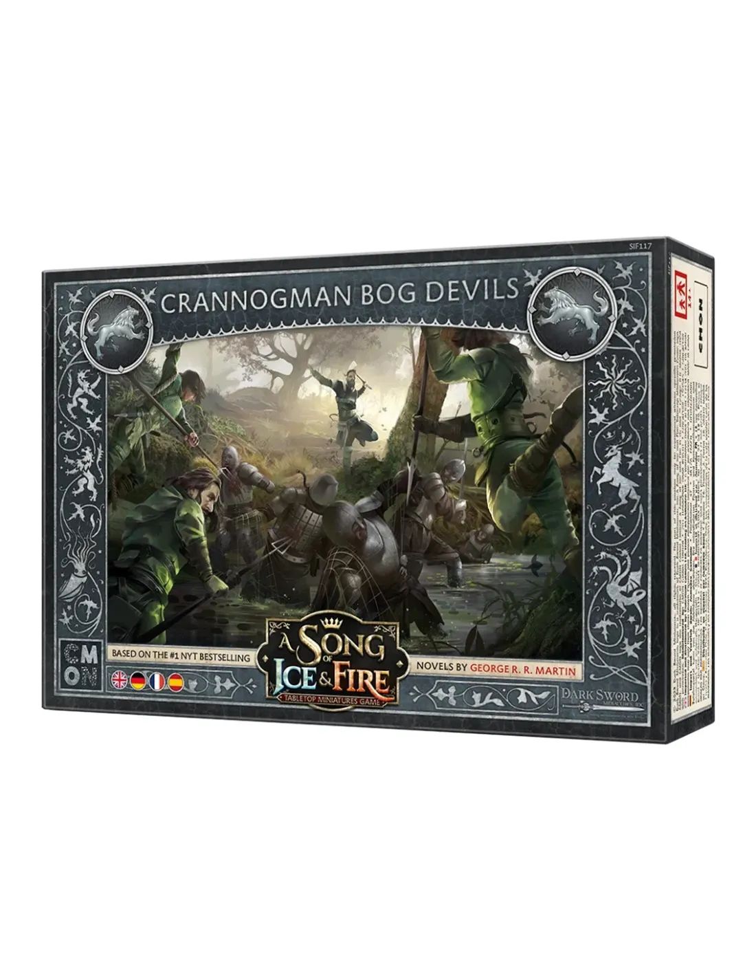 La vida de soldado implica afrontar peligros de manera constante, y esto es particularmente cierto en los pantanosos territorios del Cuello porque son los dominios de los guerreros lacustres conocidos como «demonios delpantano», que se cuentan entre las tropas especializadas en emboscar más temidas de todo Poniente. Ello se debe a que estos vasallos de la familia Reed son expertos en camuflarse en terreno cenagoso, donde se muevencon soltura gracias a que su armadura ligera evita que se queden empantanados en él y desde donde dispensan un rápido fin a sus presas mediante sus tridentes envenenados, ya que el más leve pinchazo de estas armasprovoca dolorosas heridas y asegura una muerte agónica. Además, después de atacar, los demonios del pantano se desvanecen sin más entre los árboles y en las salobres aguas dejando tras de sí solamente a los muertos ylos gemidos de los moribundos.CONTENIDO12 miniaturas4 cartas:1 carta de unidad3 cartas de reglas especiales1 bandeja de movimientoTítulo CHYF: Lacustres demonios del pantanoReferencia EECMSI137Fecha de lanzamiento 14/04/2023Editorial CMONCategoría Juego de MiniaturasColección Canción de Hielo y FuegoIdioma Español/Alemán/Inglés/FrancésEdad mínima recomendada 14 añosDuración 60'Número de jugadores 2 o +
