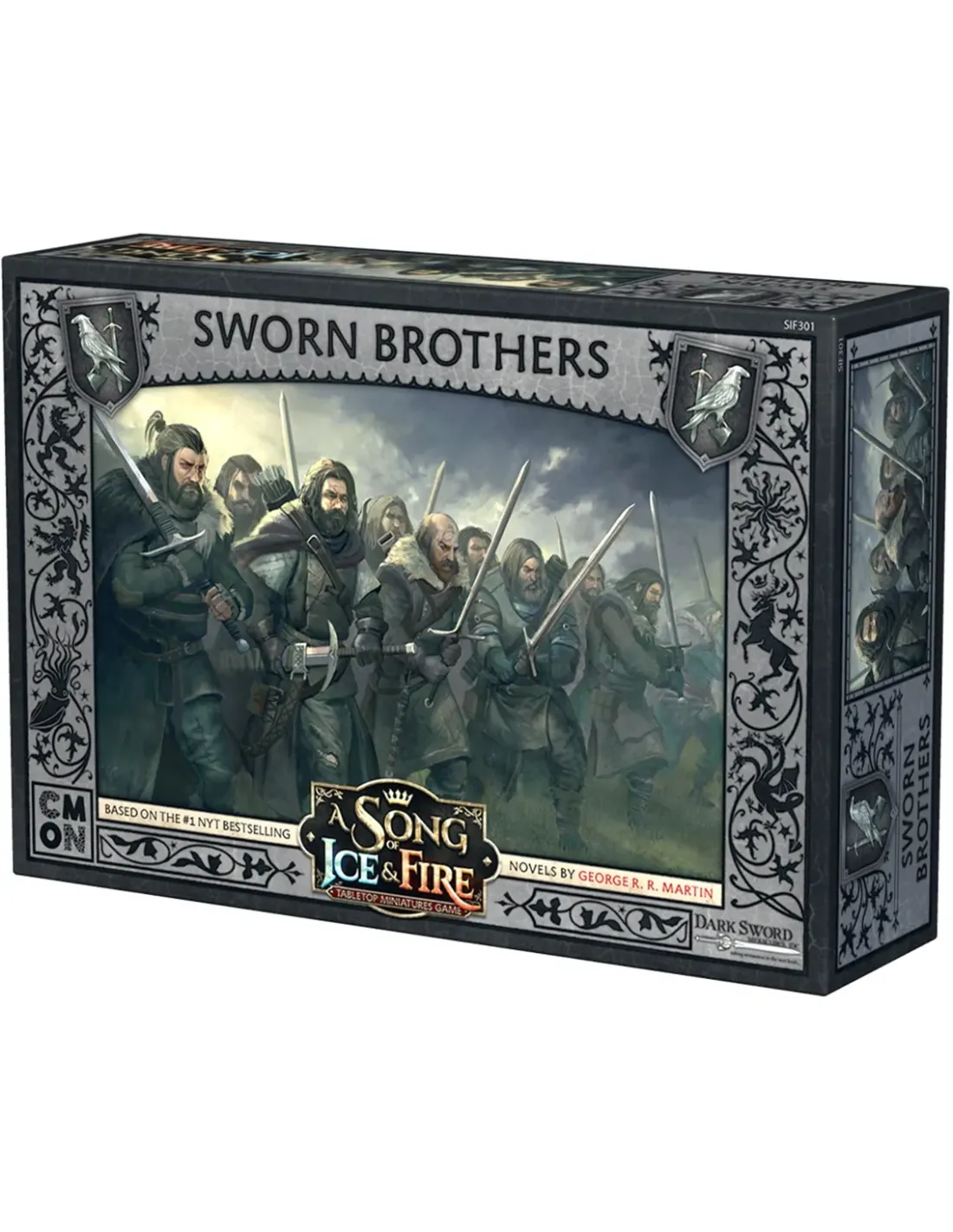 Puede que las fuerzas de la Guardia de la Noche se nutran dereclutas, criminales y gentuza de lo más variada, sin embargo, unavez visten el negro y pronuncian sus votos, los hermanosjuramentados se crecen hasta convertirse en hombres lealesque se dedican a defender el Muro de toda incursión. En el fragorde la batalla, se puede confiar en que el más común de loshermanos juramentados mantendrá el tipo ante enemigosterroríficos y repartirá devastadores golpes con su poderosomontante. A pesar de que carecen de la especialización de otrasunidades de la Guardia de la Noche, todo ejército necesita unaespina dorsal. Los comandantes hábiles deberían evitar que losflanquearan o los rodearan, y, en vez de ello, permitir que la líneade hermanos juramentados sirva como refugio para otrasunidades con capacidades más diversas.Título Hermanos juramentadosFecha de lanzamiento 28/06/2019Editorial CMONCategoría Juego de MiniaturasColección Canción de Hielo y FuegoIdioma EspañolEdad mínima recomendada 14 añosDuración 60'Número de jugadores 2 o más