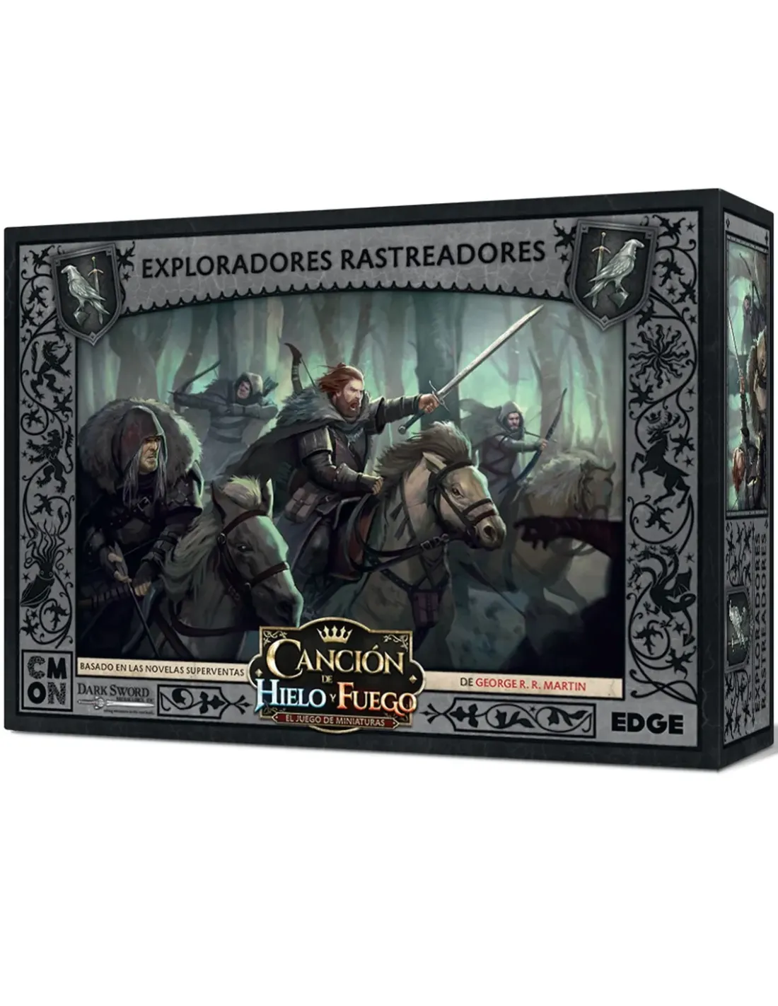 Aunque no llevan armadura ni armas pesadas, los exploradoresrastreadores se pueden mover rápidamente por el campo debatalla para atacar a sus enemigos antes de que se den cuenta desu vulnerabilidad. Y lo que es más importante aún, losexploradores rastreadores son muy hábiles a la hora deindicarles a sus hermanos cuáles son los objetivos másvulnerables. Tanto si el enemigo está en mitad de una maniobra,conmocionado por un fuerte impacto o simplemente carente dedeterminación, los rastreadores pueden identificar la debilidad deuna unidad y transmitirle esa información al comandante delejército. Al ser caballería ligera, los rastreadores no se manejanbien en escaramuzas cuerpo a cuerpo, sin embargo, sus arcosrecurvos les permiten atacar a distancia, y sus monturas lesproporcionan una huida rápida. Con algo de tiempo, losrastreadores pueden mermar hasta las unidades más coriáceas.Título Exploradores rastreadoresFecha de lanzamiento 22/11/2019Editorial CMONCategoría Juego de MiniaturasColección Canción de Hielo y FuegoIdioma EspañolEdad mínima recomendada 14 añosDuración 60'Número de jugadores 2 o más
