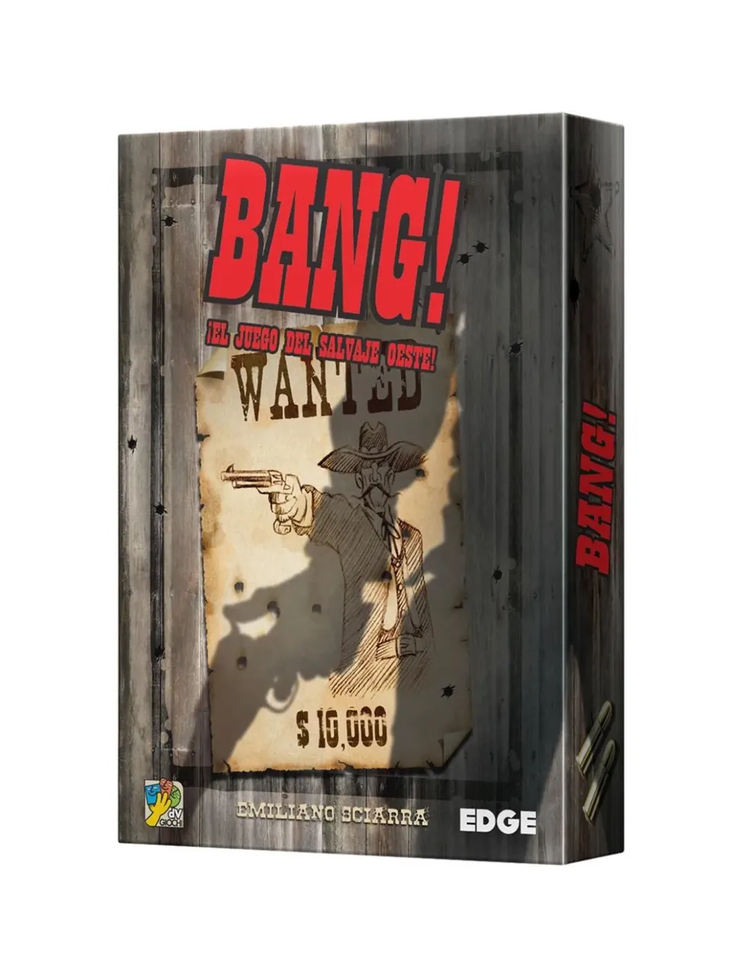 Una calle polvorienta. Una zarza rueda de un lado a otro. Doshombres de pie, frente a frente. Uno de ellos va armado con unapistola. El otro le apunta con su Winchester.Todos miran con ansiedad al pistolero pensando que ya estámuerto, que no tiene nada que hacer ante el rifle... ¡pero lo que nosaben es que su pistola es una Volcanic!En el Salvaje Oeste, los Forajidos dan caza al Sheriff, el Sheriff dacaza a los Forajidos, y el Renegado urde su plan en secreto, listopara unirse a cualquiera de los bandos. Dentro de poco, ¡las balascomenzarán a zumbar!Quiénes serán los Alguaciles, dispuestos a dar su vida por elSheriff? Quiénes serán los implacables Forajidos, que intentanacabar con él? El juego de cartas más famoso del Salvaje Oestevuelve, en un formato mejorado, con nuevos componentes, ¡másfácil de aprender y jugar que nunca!¡Disfruta del juego que ha sido aclamado por más de medio millónde pistoleros de todo el mundo!CONTENIDO103 Cartas de juego, 7 Cartas de resumen, 7 Tableros, 30 Fichas debala, 1 Libro de reglas.Título Bang!Referencia EEDVBA01Fecha de lanzamiento 30/09/2021Editorial dV GiochiCategoría Juego de CartasColección Bang!Idioma EspañolEdad mínima recomendada 8 añosNúmero de jugadores 4 a 7EAN 8435407600478PVP recomendado 19,99