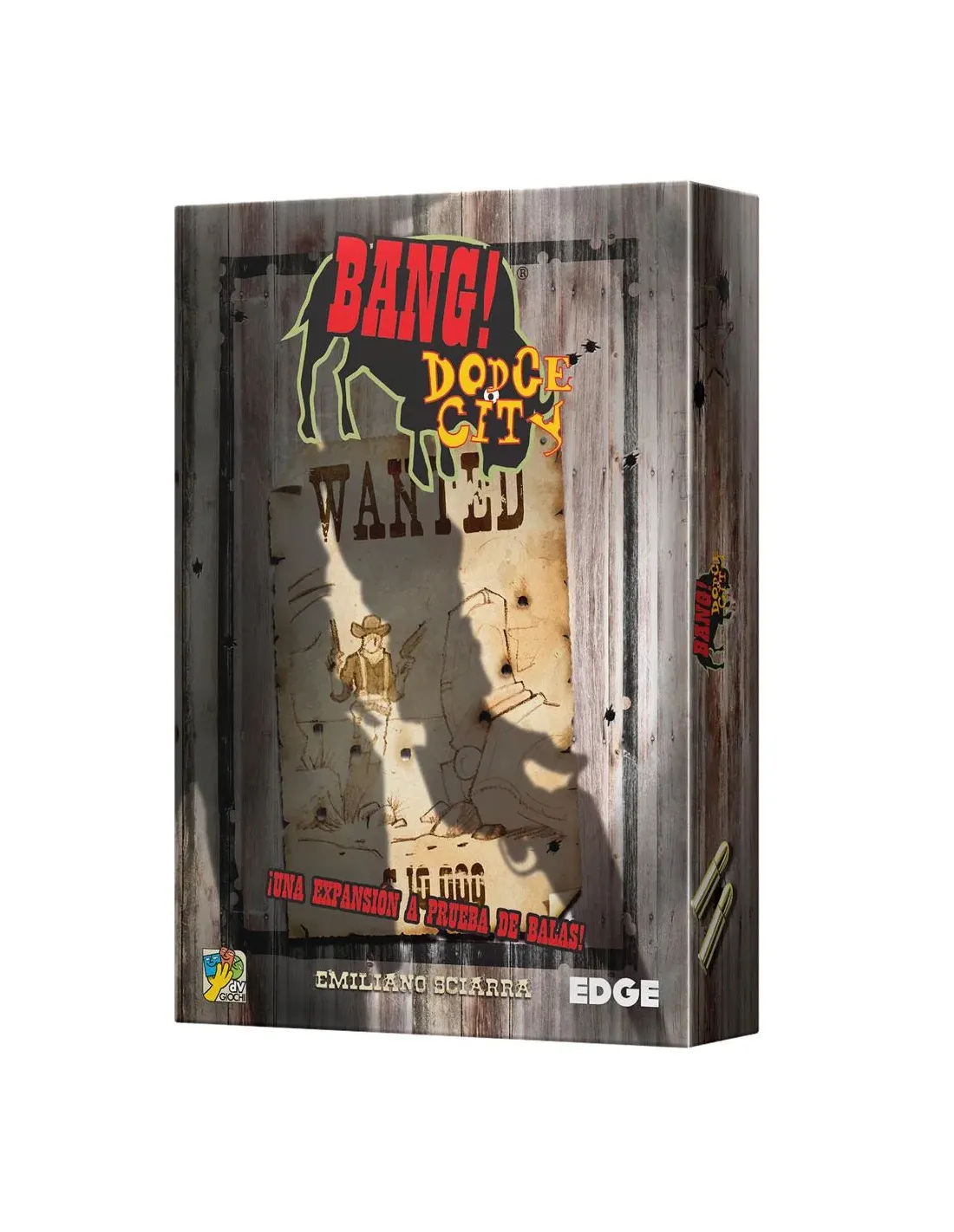 ¡Una expansión a prueba de balas!Dodge City: Una bulliciosa, caótica y vibrante ciudad... ¡y hogar de los peoresmaleantes de las llanuras del Oeste! Los tiroteos son el pan de cada día, y laplancha metálica que llevas puede que no baste para salvarte la vida...Proteger la Ley y el Orden es una tarea únicamente para los Sheriffs másvalientes.¿Estarás a la altura del desafío o acabarás muriendo con las botas puestas?BANG! Dodge City es una expansión que hará tus partidas de BANG! aún másdivertidas y emocionantes.CONTENIDOIncluye 8 cartas de Roles, 15 cartas de Personaje, 4 fichas de Bala, 40 cartas dejuego, 1 tablero de juego, 1 carta de Resumen.NOTASIncluye nuevas cartas y personajes que permiten jugar de 3 a 8 jugadores.Título Bang!: Dodge CityFecha de lanzamiento 26/11/2021Editorial dV GiochiCategoría Juego de CartasColección Bang!Idioma EspañolEdad mínima recomendada 10 añosDuración 30'Número de jugadores 3 a 8