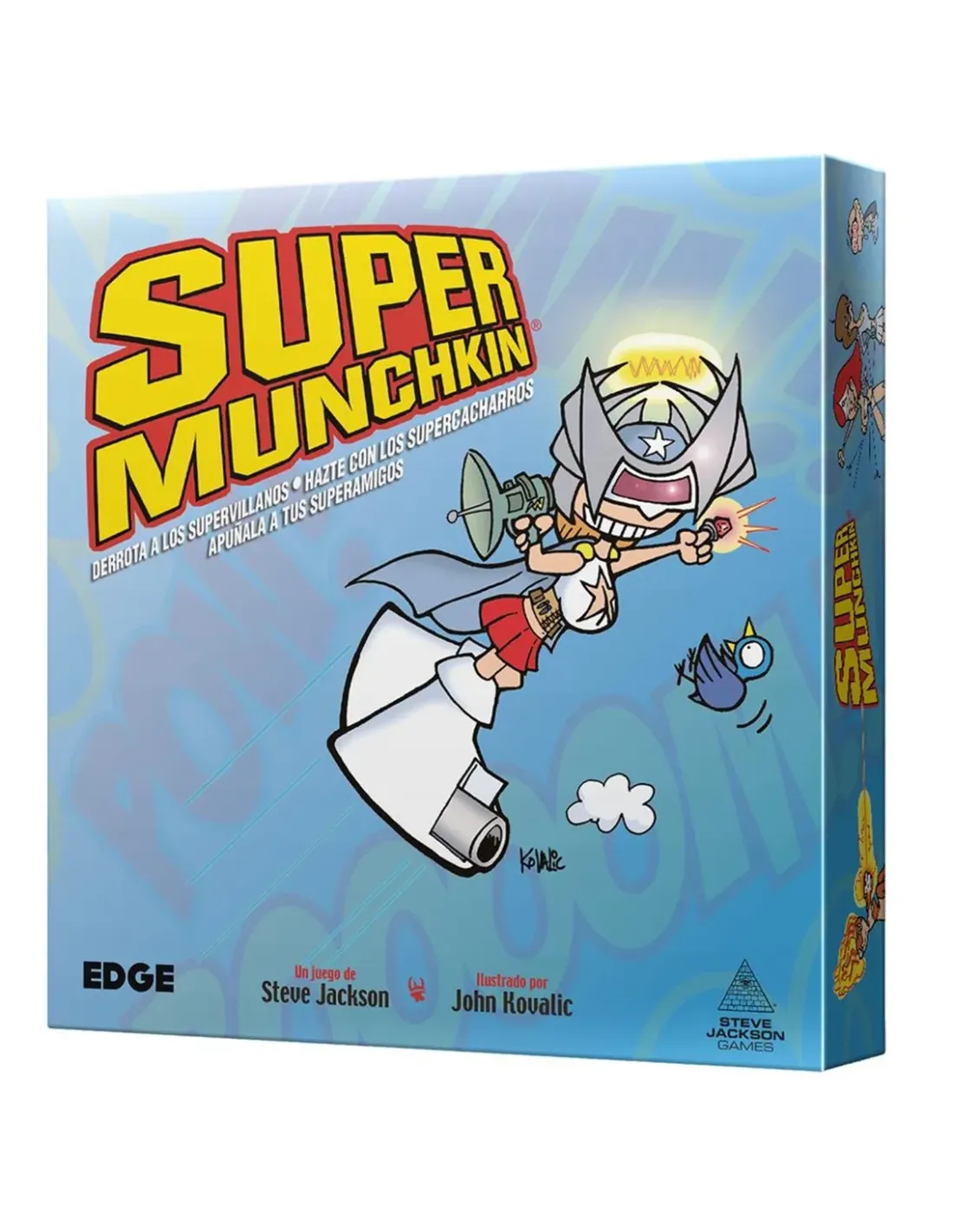 Al principio sólo era un joven y sencillo juego de Munchkin. Pero un día fueafectado por unas extrañas energías, mordido por un chihuahua radioactivo ytocó una estatua ancestral. ¡Y ahora se enfrenta a sus enemigos, luchandopor Niveles, Tesoros y el modo de vida Munchkin!Sé un Mutante, Exótico, Místico o Tecnificado superheroico, acumula Poderescomo Estirabilidad, Brutal Eructo Cervecero o el clásico Tirar Rayos por losOjos, lucha contra temibles supervillanos como El Hombre Miniatura, ElPeluche Satánico, o Nuestro Viejo Amigo el Devorador de Planetas, y LLÉVATESUS COSAS.Con la ayuda de objetos como las Botas del Calibre .50 o la Licencia deDemolición y de alguno de esos lamentables Compinches que siempre teacompañan, ningún enemigo podrá detenerte.Super Munchkin es un juego completo. Presenta por primera vez losPoderes, con sus correspondientes (y ridículos) Orígenes, pero siguesiendo compatible con toda la línea Munchkin.FICHA TÉCNICA:Título: Super Munchkin Nueva EdiciónFecha de lanzamiento: 19/07/2019Editorial: Edge EntertainmentCategoría : Juego de CartasColección: MunchkinIdioma: EspañolEdad mínima recomendada: 14 añosDuración: 30-60'Número de jugadores: 2 a 6