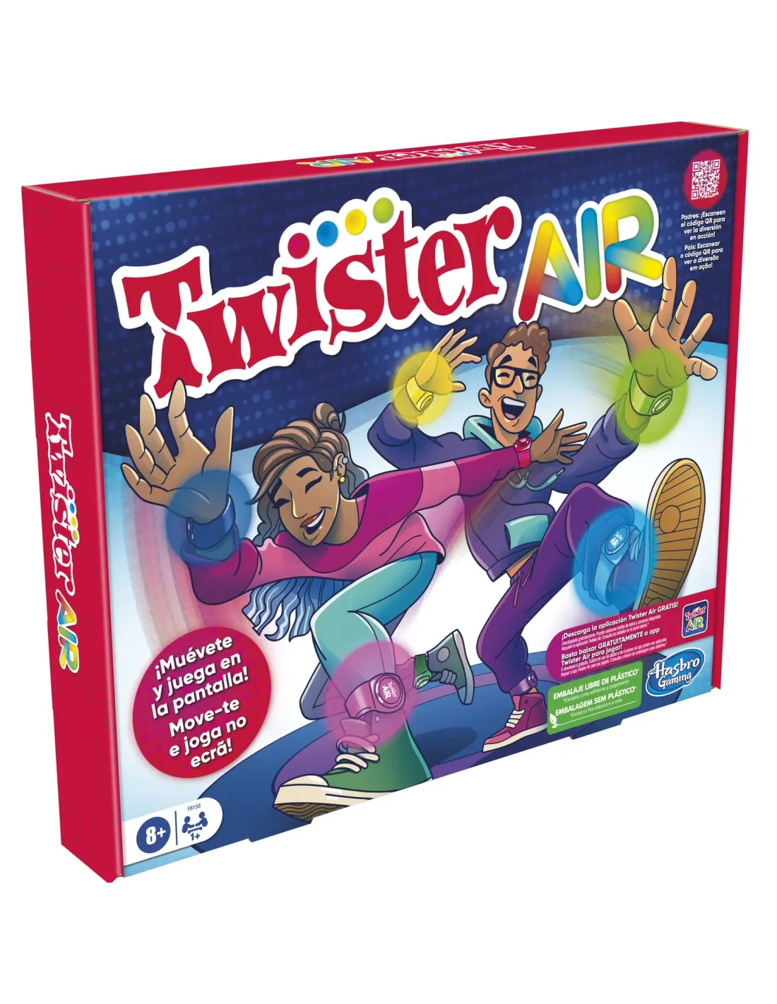 ¡Lleva tus movimientos del tapete a la pantalla con el juego Twister Air! Ningún tapete? ¡Así es! En este juego Twister con aplicación, la fiesta se traslada al dispositivo inteligente de un jugador. Este divertido juego de fiestas incluye 8 bandas de colores Twister Air y un soporte de dispositivo compatible con cualquier móvil o tableta. Para empezar, descarga la aplicación Twister Air (Descárgatela gratuitamente. Pueden aplicarse tarifas de datos y compras integradas) y coloca un dispositivo inteligente en el soporte incluido. ¡Luego los jugadores se colocan las bandas en las muñecas y tobillos para estar preparados para la acción! Con la música sonando, los jugadores mueven el cuerpo para intentar hacer coincidir sus bandas con la posición de los círculos de colores en la pantalla. Estírate, deslízate, aplaude y asume poses disparatadas. Mientras más círculos marques, mayor será tu puntuación. ¡Gana la mayor cantidad de puntos para ganar! O juega solo e intenta superar tu propio récord. Este juego Twister Air con aplicación de realidad aumentada es un emocionante juego para fiestas de niños y para las noches de juegos. Además, es un maravilloso regalo para familias, niños y niñas a partir de 8 años. Apple, el logo de Apple, iPhone y iPad son marcas registradas de Apple Inc., registradas en EUA y otros países. App Store es una marca de servicio de Apple Inc. Android, Google Play y el logotipo de Google Play son marcas registradas de Google, LLC. Twister y Hasbro y todos los términos relacionados son marcas registradas de Hasbro.