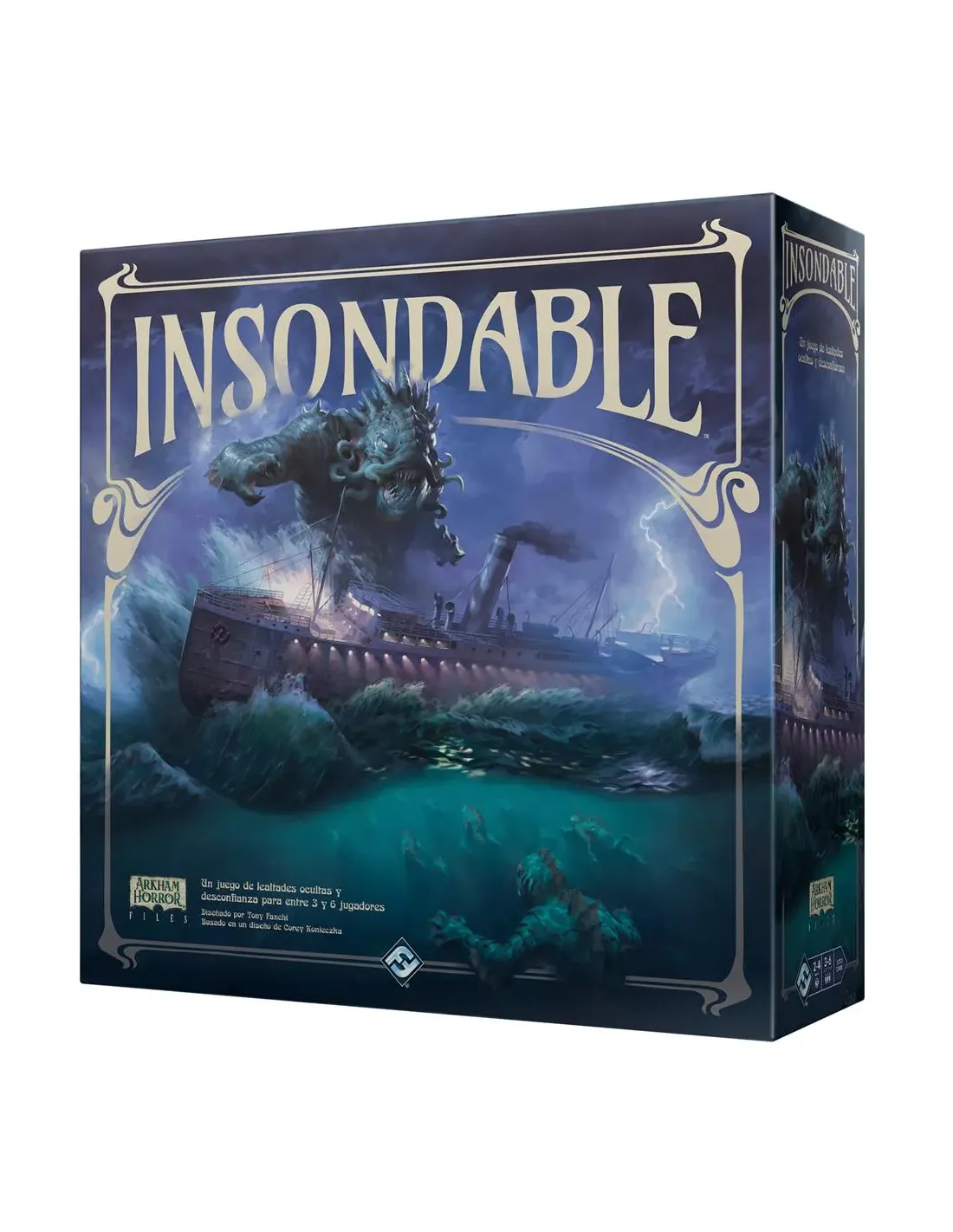 Horror en alta mar.Bajo las olas, allá donde la vista no alcanza, la oscuridad acecha a ciertobuque a vapor con rumbo a Boston, el Atlantica. Muchos de los demáspasajeros contemplan el mar con un silencioso anhelo desesperado, comosumidos en un trance preternatural. Tus sueños están plagados depesadillas submarinas innombrables. Y por si todo eso fuera poco, uno delos pasajeros ha sido asesinado.En Insondable, la desconfianza, la intriga y las estrategias maquiavélicasestán a la orden del día. Tus amigos y tú estáis al mando del buque, pero notodo el mundo es de fiar. Mientras unos seres monstruosos, los profundos,emergen de las profundidades abisales para asaltar el barco, cualquiera delos jugadores podría ser en realidad un vil sectario o un horripilante híbridode profundo y estar conspirando en secreto contra el resto del grupo. Vigilasiempre a tus compañeros vas a necesitar toda tu astucia para evitar que laembarcación acabe en una tumba acuática. ¡Rechaza la invasión de losprofundos, descubre a los traidores y guía el Atlantica hasta puerto seguroen Insondable!CONTENIDOGuía de aprendizaje, Referencia de reglas, Tablero con 4 medidores derecursos, 22 figuras de monstruo de plástico, 10 hojas de personaje, 3hojas de referencia de traidor, 6 hojas de referencia de jugador, 10 figurasde personaje de cartón, 1 ficha de Jugador activo, 4 marcadores de Traidor,fichas de Pasajero, 1 dado de 8 caras, 1 ficha de Viaje, 1 ficha de Ritual, 14cartas de Lealtad, 70 cartas de Mitos, 2 cartas de Rol, 20 cartas de Hechizo,20 cartas de Escala, 20 cartas de Objeto, 9 cartas de Daño del barco, 10cartas de Proeza, 126 cartas de HabilidadTítulo InsondableFecha de lanzamiento 15/10/2021Editorial Fantasy Flight GamesCategoría Juego de CartasColección UnfathomableIdioma EspañolEdad mínima recomendada 14 añosDuración 2-4 H.Número de jugadores 3 a 6