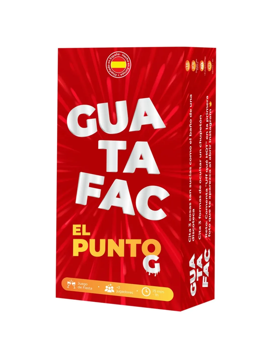 Tras el éxito del original GUATAFAC, los creadores decidieron crear unanueva obra de arte, siguiendo las incesantes peticiones de su grancomunidad de jugadores.De hecho, Guatafac es un juego que se ha hecho viral a través de las redessociales como Instagram y Tiktok. El nombre, el diseño, las innovaciones ycontenido de las cartas fueron seleccionados y sugeridos por sucomunidad.¡NUEVO! TEMÁTICAS DISTINTAS PARA ANIMAR TUS FIESTASEn GUATAFAC : El Punto G, tienes 8 segundos para descubrir lospensamientos más profundos de tus amigos, familiares o inclusoextraños. Podrás encontrar 480 cartas con diferentes categorías como:tranquileo, confesión, hot y resacón, además de Verdad vs Reto o Elfriki.CONTENIDO420 cartas categorizadas (tranquileo, confesión, hot y resacón).60 cartas especiales (Verdad vs Reto y El Friki).1 app gratis para descargar.Título Guatafac El Punto GReferencia LCLS03ESFecha de lanzamiento 02/09/2022Editorial La CajaCategoría Juego de tableroColección GuatafacIdioma EspañolEdad mínima recomendada 16 añosDuración 15-60'Número de jugadores 3 a 12EAN 3770011991297