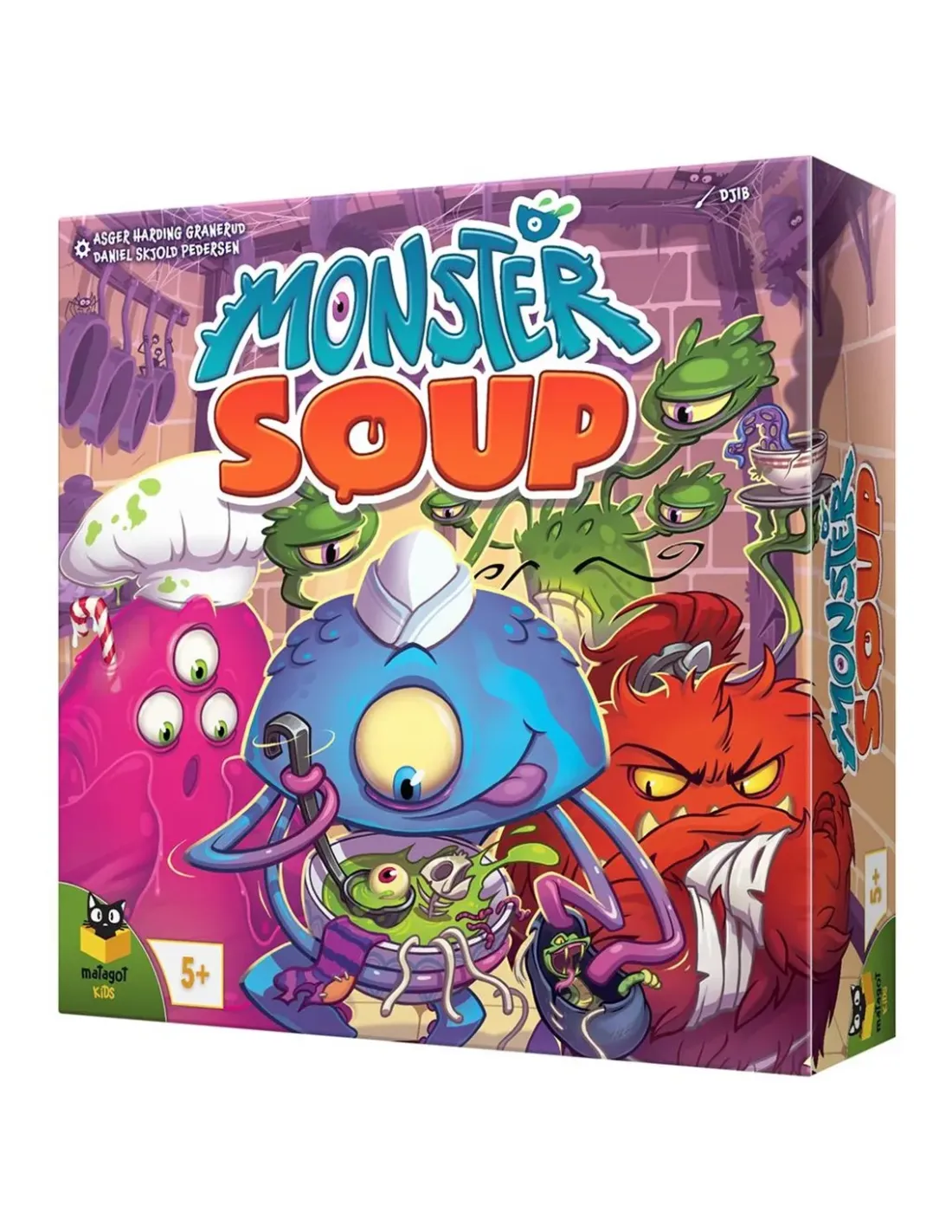 Los monstruos siempre tienen hambre y por eso nunca salen sin una bolsallena de provisiones para poder prepararse una deliciosa sopa en cualquiermomento... ¡pero tienen que encontrar los ingredientes indicados en sumonstruoso libro de recetas!1. Revela un nuevo Ingrediente para la receta.2. Encuentra los Ingredientes en tu bolsa y añádelos a tu sopa.3. Consigue cubos de Limo.CONTENIDO4 bolsas de tela4 cuencos de Sopa40 Ingredientes40 cubos de Limo10 cartas de RecetaTítulo Monster SoupFecha de lanzamiento 25/03/2022Editorial MatagotCategoría Juego de tableroColección Monster SoupIdioma EspañolEdad mínima recomendada 5 añosDuración 15'Número de jugadores 2 a 4
