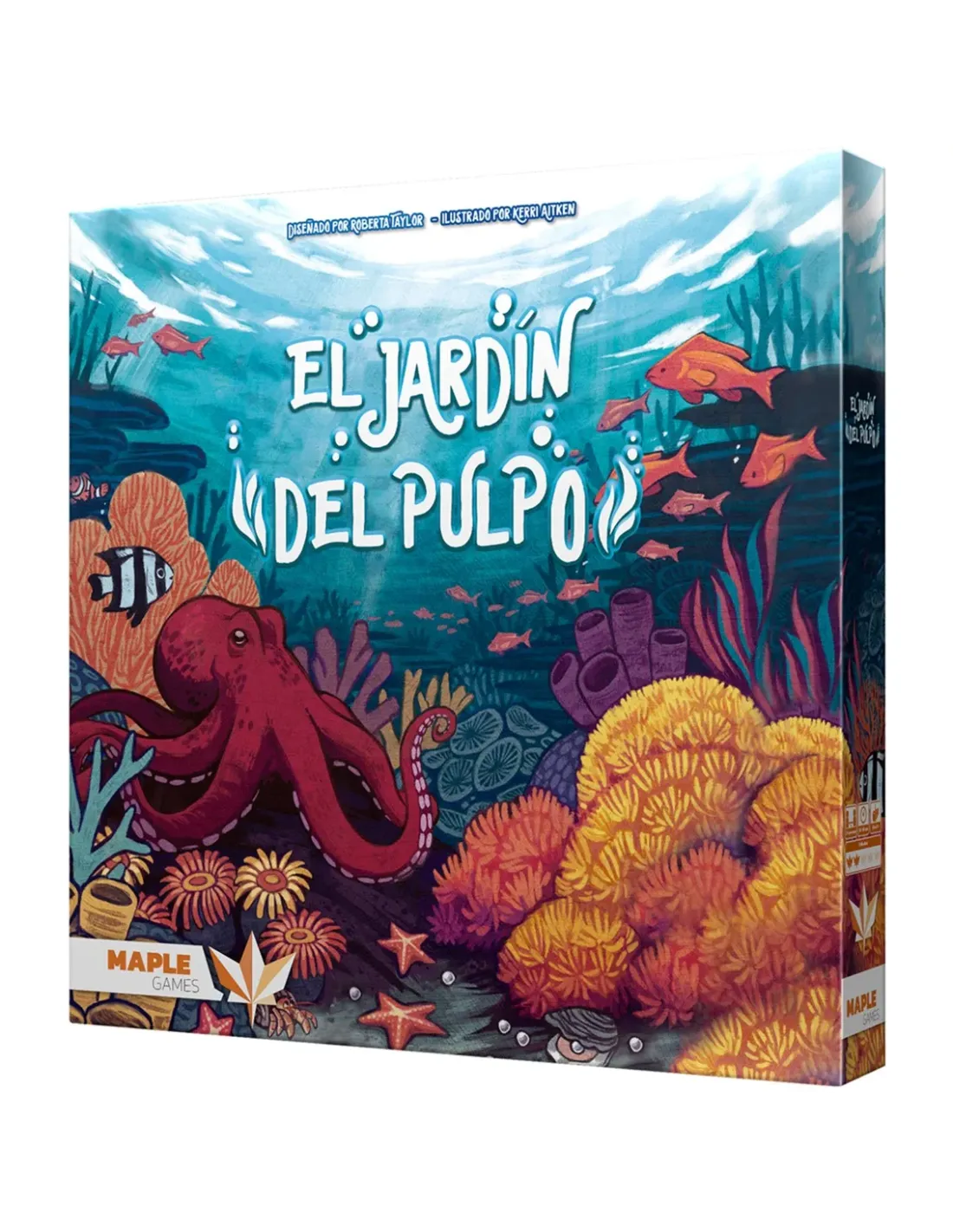 Compite por recolectar todos los elementos necesarios para tu jardín debajo del mar y atrae a todos los peces que puedas para ganar puntos. En El jardín del pulpo, eres un pulpo que compite con losdemás por tener el jardín marino más bonito de todos. Atrae a coloridos caballitos de mar y peces payaso e intenta que las estrellas de mar no se coman todas tus ostras o dejarás de producir perlas.CONTENIDO4 jardines individuales (1 por persona) con 2 ostras incluidas en ellos y 24 espacios de jardín vacíos, 2 hojas de ayuda rápida, 106 fichas de Jardín (cada una con su coste en perlas y su valor en puntosde belleza al final de la partida), 4 pulpos de madera, 16 fichas de Ostra, 1 tablero de mercado (con un marcador en el reverso), 5 fichas de Pez payaso y 5 fichas de Caballito de mar (con valores 7, 6, 5, 4y 3), 40 perlas y 5 conchas de ostra para guardarlas, 1 bolsa (para guardar las fichas de Jardín), 1 reglamento.Título El Jardín del PulpoReferencia MAPOG01Fecha de lanzamiento 09/12/2022Editorial Maple gamesCategoría Juego de tableroColección Octopus's GardenIdioma EspañolEdad mínima recomendada 8 añosDuración 30-45'Número de jugadores 2 a 4EAN 8435407641020